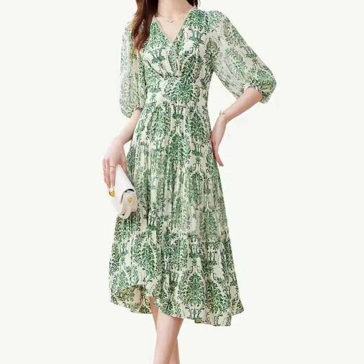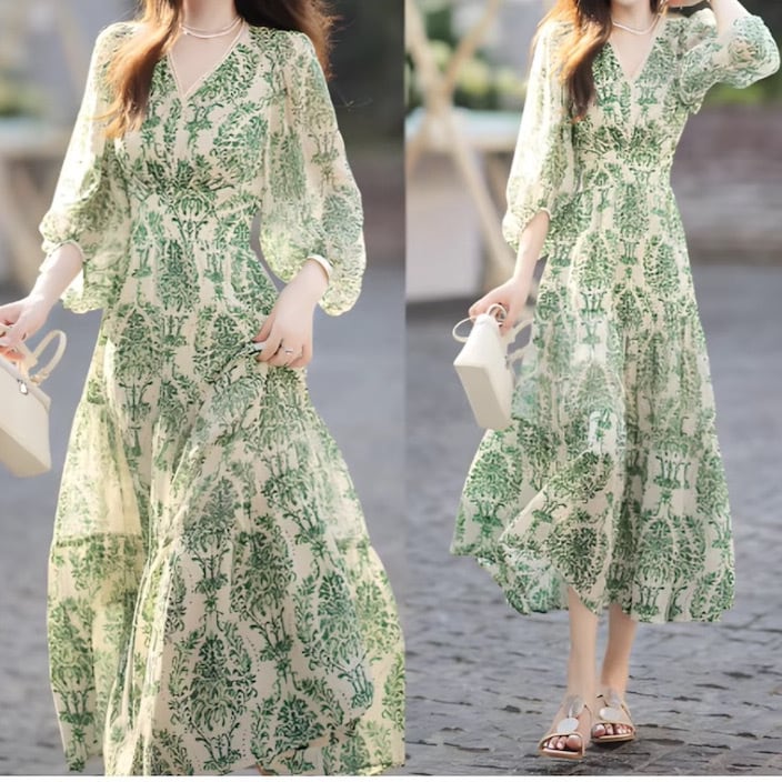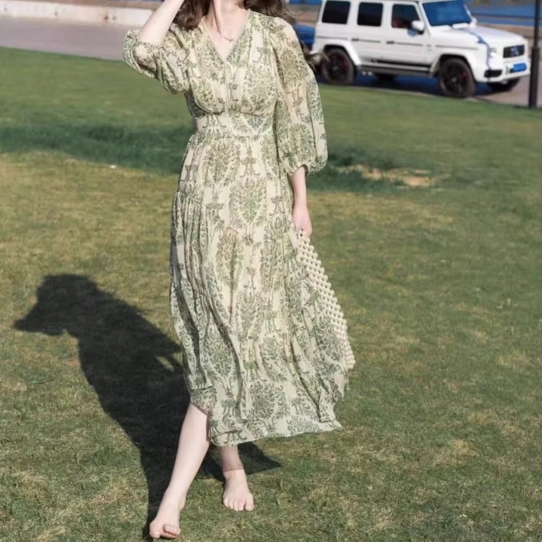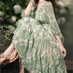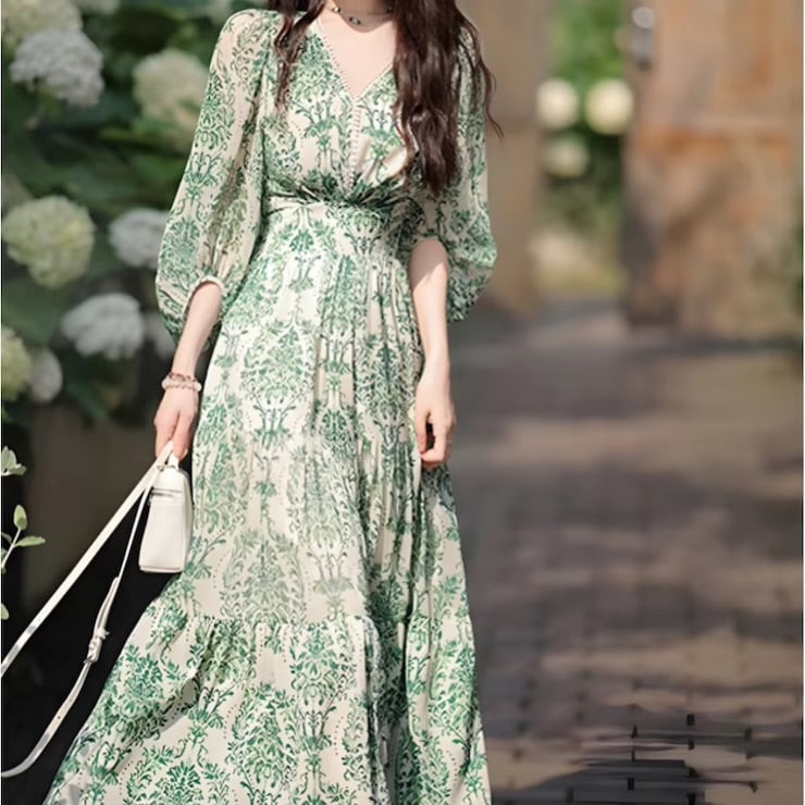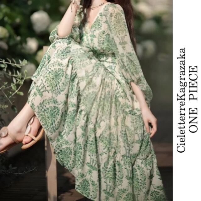 美ダマスク柄Vネックワンピース