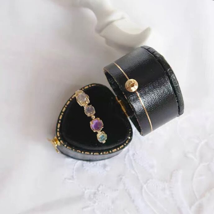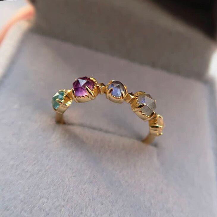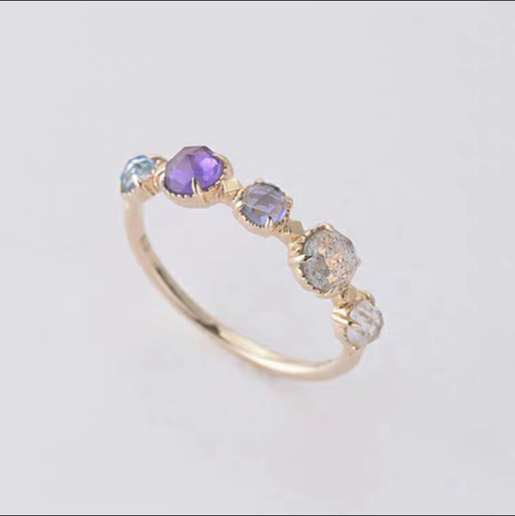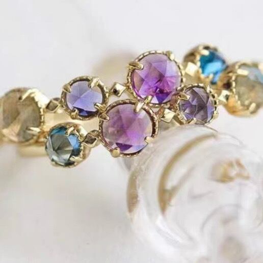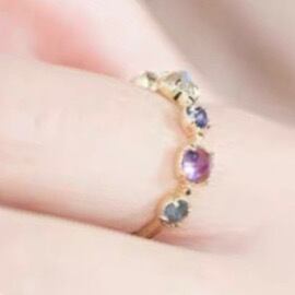 パワーストーンとしても人気がある石が指輪に散りばめられ、身につけられる方を可憐に応援する華奢なリングです。