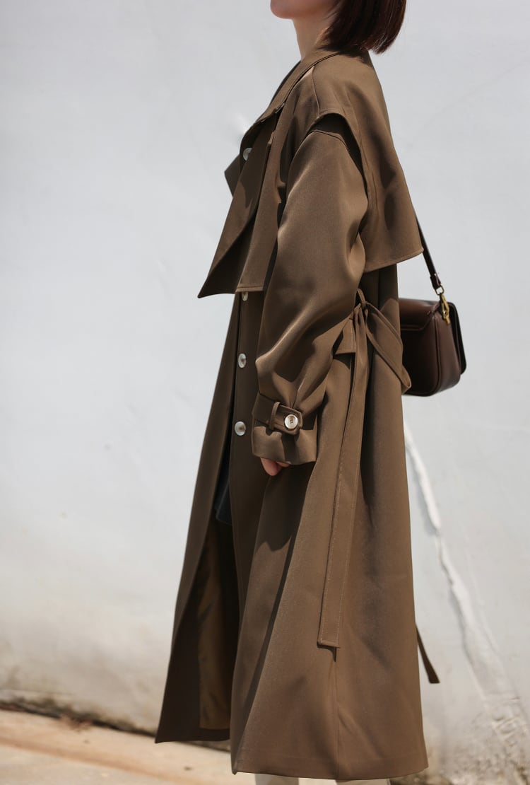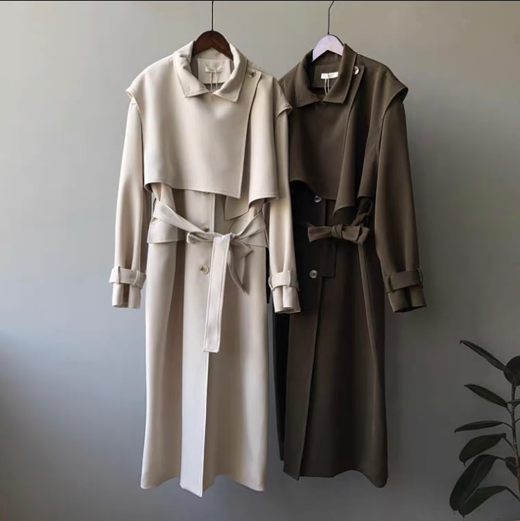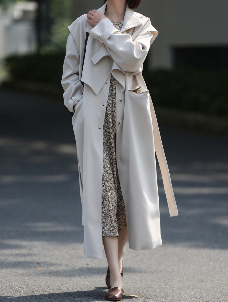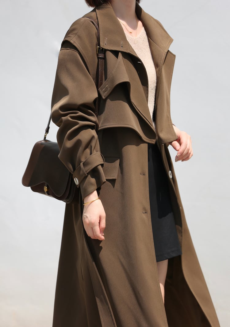 滑らかさのある秋春コート。肩当ベストを取るとステンカラーに。秋はもちろん、特にスプリングコートとして着る時にはどうしても1枚では心許ないもの。こちらは温度調節に便利かつトレンチ風に着こなせるのが魅力。 本体サイズ 肩幅 袖丈 バスト ウエスト 着丈 M 53 55 118 128 118 L 54 56 122 132 119 肩当サイズ 肩幅 バスト 長さ M 51 101 40 L 52 114 41 【お届けについて】 こちらの商品は海外店舗より直接発送となる為、 ご入金から3~6週間前後でお届け致します。 コロナ禍の影響で遅れが生じております。 ◼️注意事項 初めてのご購入は、必ずこちらをご覧下さい。 https://bon.cieletterre.shop/about