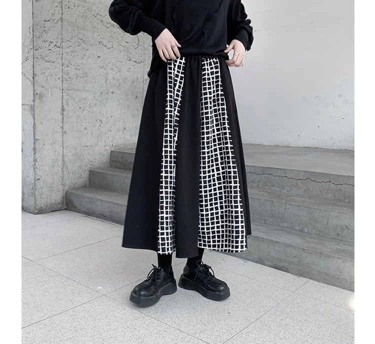 checkered stitch thick skirt sk112-240055