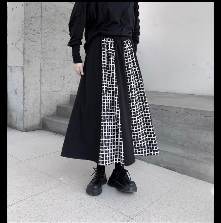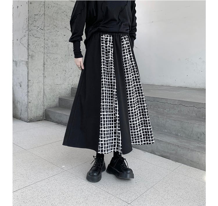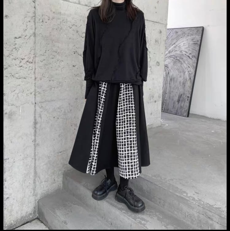 厚手で手書き風にも見える白いギンガムチェックのコントラストが目を引くスカート。