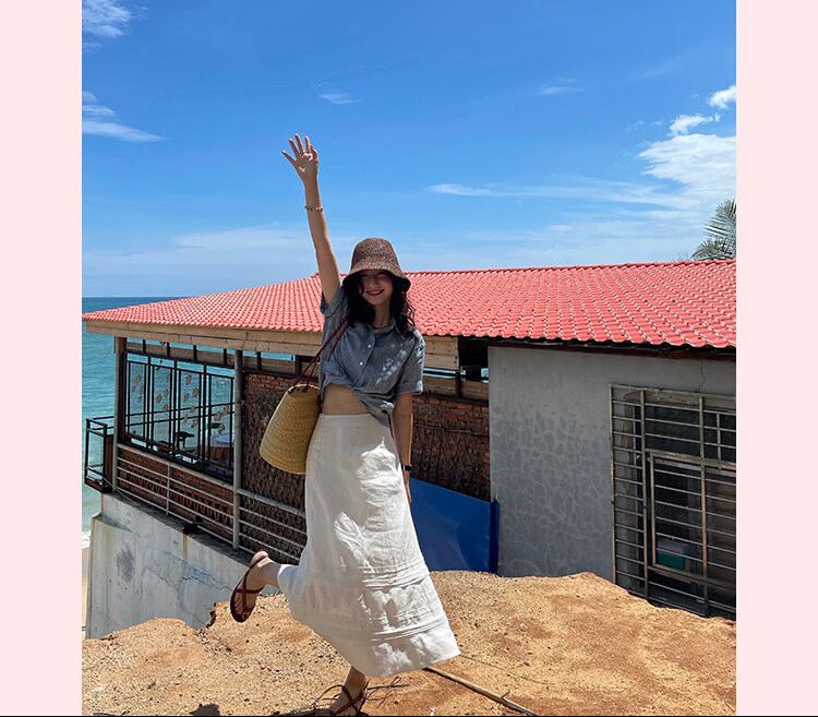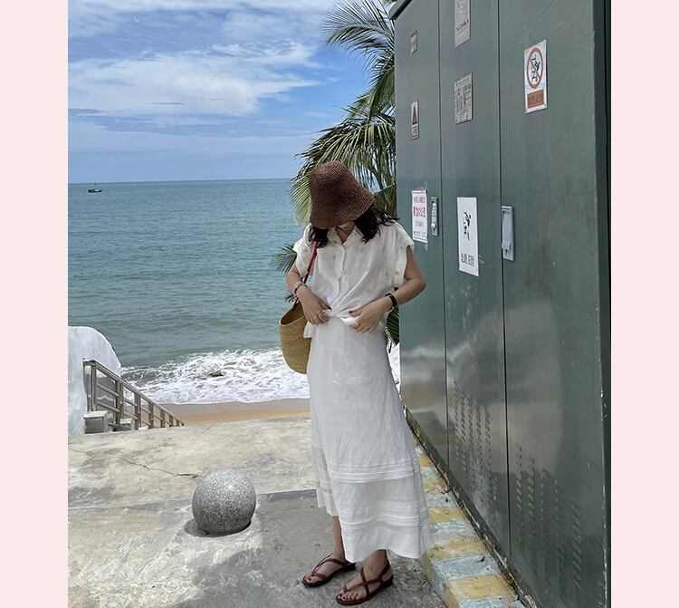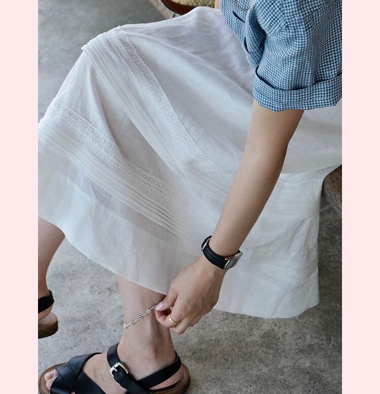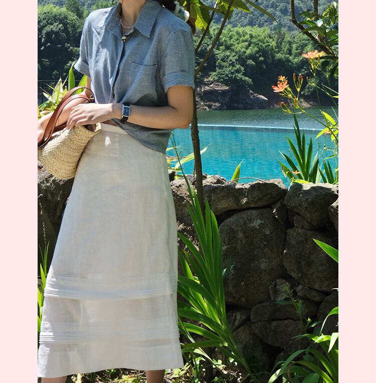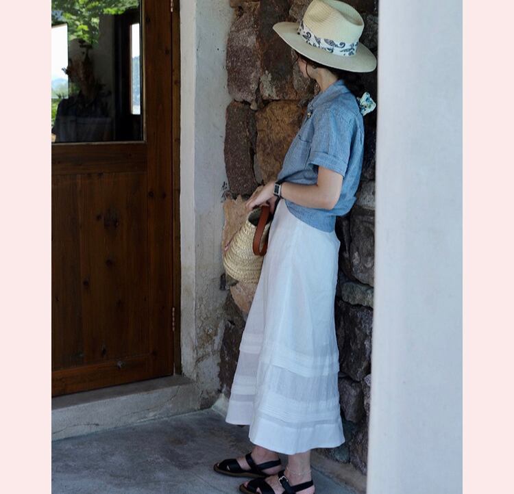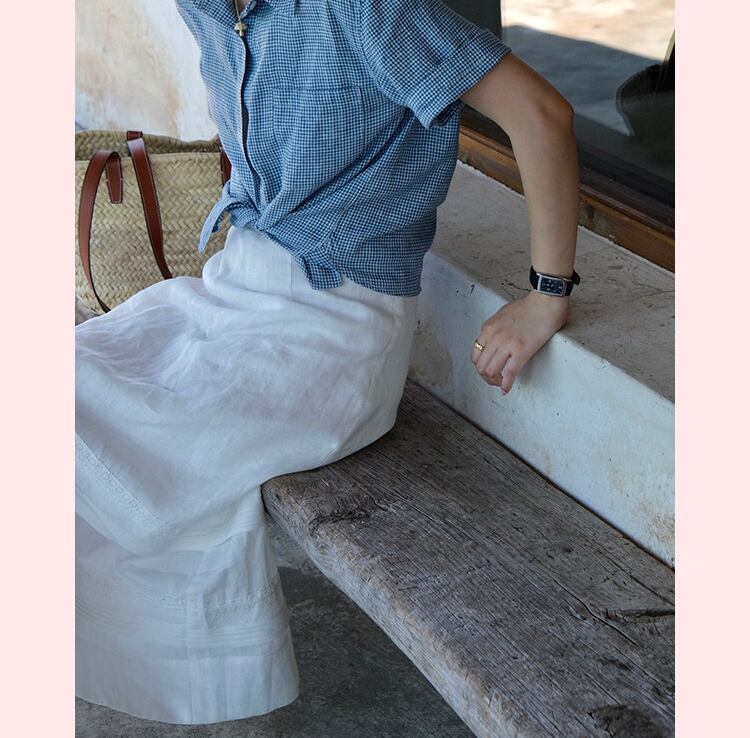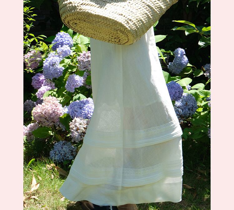 麻素材ビクトリアンドレープ白ラミースカートS-221801