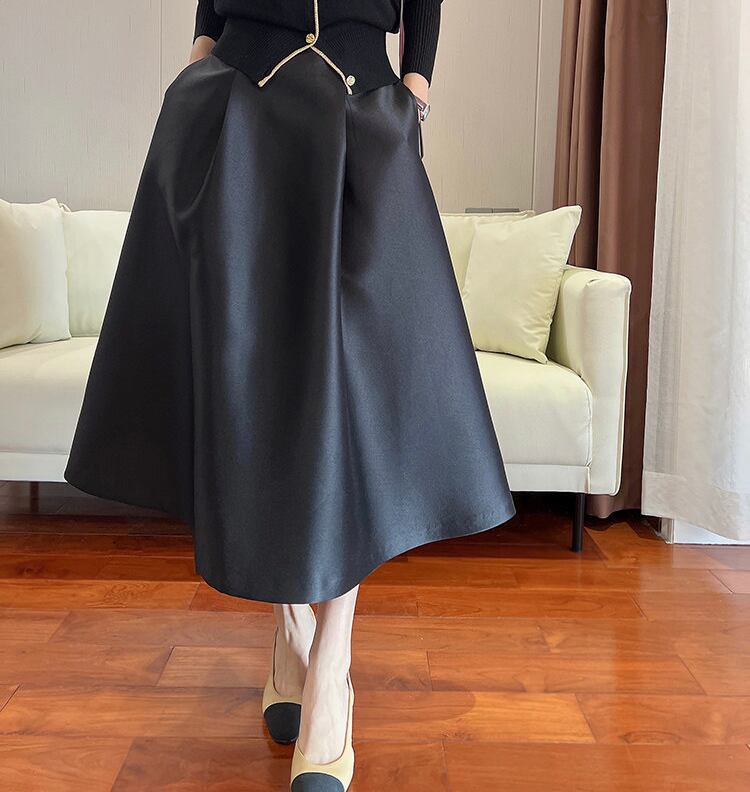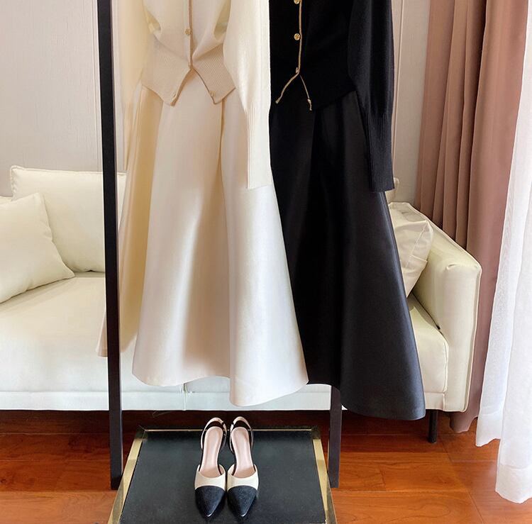 シルクウールの上品でゴージャスな光沢が目を引く、立体的でエレガントなサーキュラースカートです。 ヒップの締め付けがないので足さばきが楽。 ランチやディナーに、デスクワークに、 ノンジャケットでも気後れしません。 ホテルのレストランやカフェで。 カジュアルでもきちんとした格好をしたい時のために。 秋から春にかけて大人が使えるスカートです。 【素材】 ウール53%、シルク47% 裏地:ポリエステル95%、スパンデックス5% 【色】 エクリュ。黒。 【サイズ】 36 ウェスト64cm 長さ74cm 推奨体重45~50kg 38 ウェスト68cm 長さ78cm 推奨体重50~55kg 40 ウェスト72cm 長さ82cm 推奨体重55~60kg 42 ウェスト76cm 長さ86cm 推奨体重60~65kg ※1~3cmの誤差はご容赦ください。 【モデル写真はこちらとコーディネートしています。】 ゴールドトリムのカシミヤカーディガン https://bon.cieletterre.shop/items/59234600 【お届けについて】 こちらの商品は海外店舗より直接発送となる為、 ご入金から3~6週間前後でお届け致します。 コロナ禍の影響で遅れが生じております。 ◼️注意事項 初めてのご購入は、必ずこちらをご覧下さい。 https://bon.cieletterre.shop/about