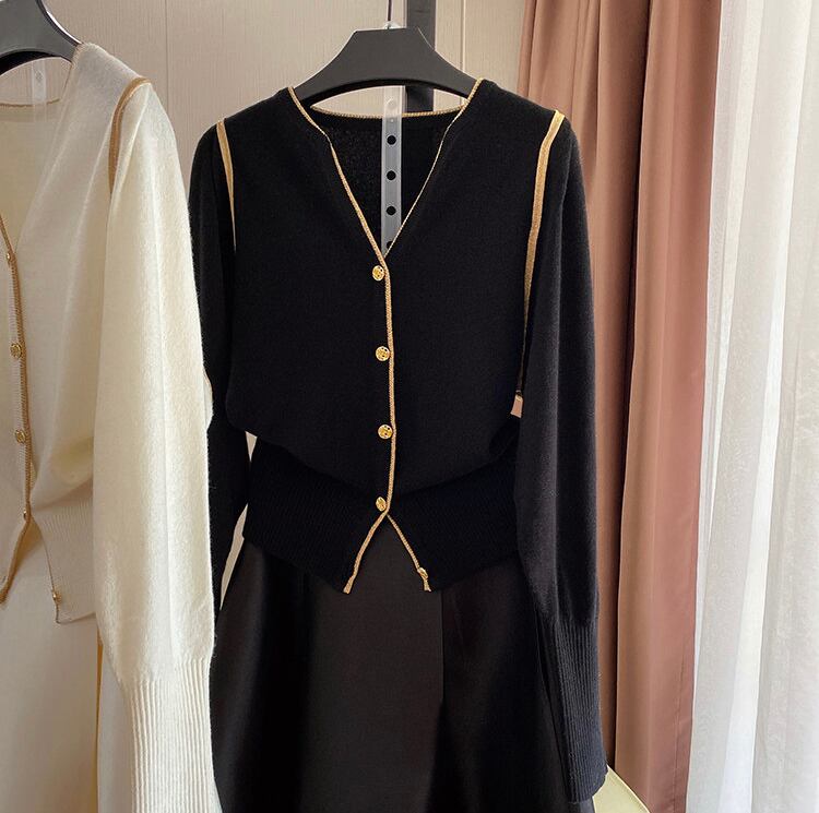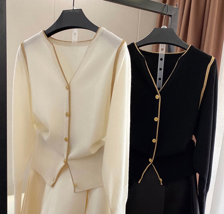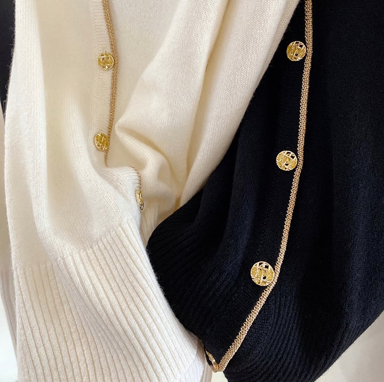 カシミヤのカーディガンにエッジをきかせて、 きちんと感のあるオフィスカジュアルに。 シルクウールのスカートとの相性が抜群の1枚です。 Vネックが深くないので1枚でも。 【素材】 カシミヤ100% 【色】 エクリュ。黒。 【サイズ】 M 肩幅35cm 胸囲不限 袖丈63cm 着丈56cm L 肩幅36cm 胸囲不限 袖丈64cm 着丈57cm ※1~3cmの誤差はご容赦ください。 普段Sサイズの方はMをお選びいただいて大丈夫です。 【モデル写真はこちらとコーディネートしています。】 シルクウールのスカート https://bon.cieletterre.shop/items/59233737 【お届けについて】 こちらの商品は海外店舗より直接発送となる為、 ご入金から3~6週間前後でお届け致します。 コロナ禍の影響で遅れが生じております。 ◼️注意事項 初めてのご購入は、必ずこちらをご覧下さい。 https://bon.cieletterre.shop/about