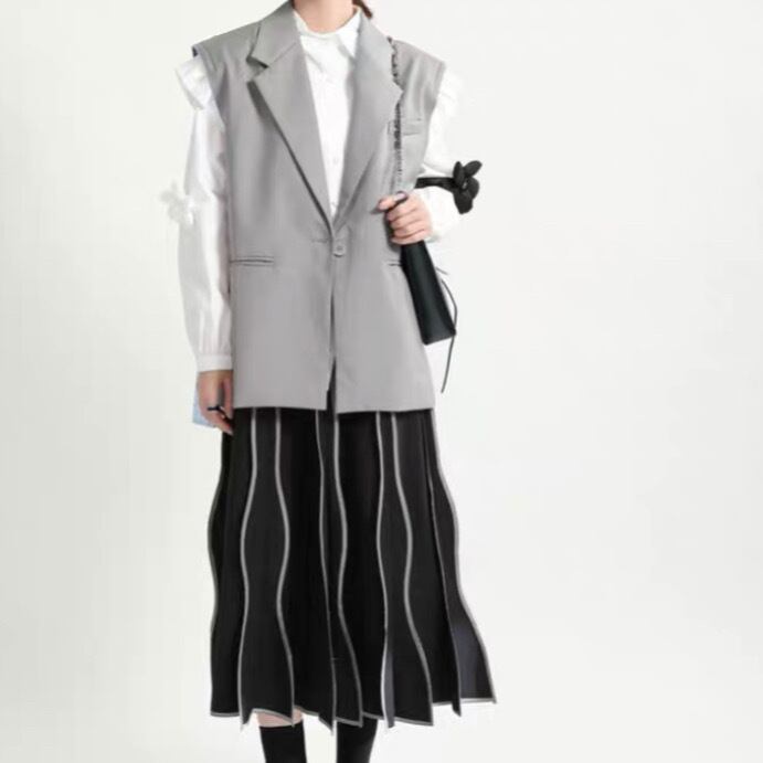 うねうねしたグレーのドレープが、全体のバランスをよく魅せてくれる便利な1枚。