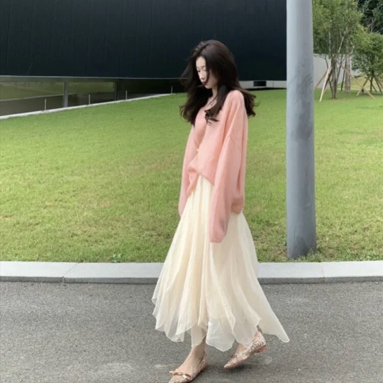 ウェストはゴム入りで伸縮性があり履きやすいスカートです。