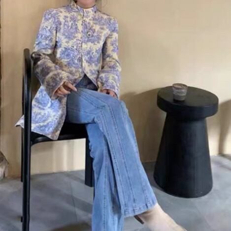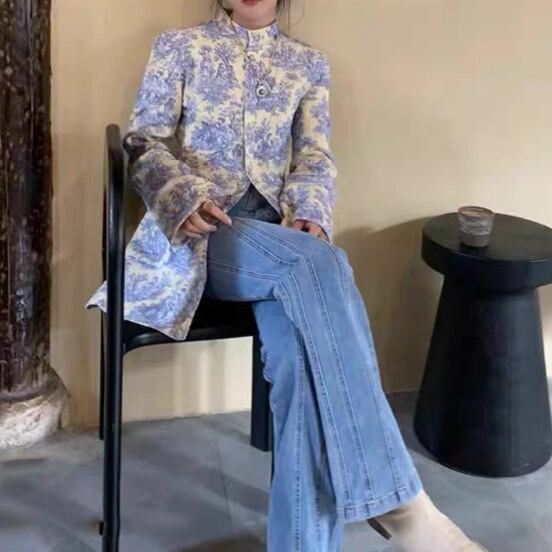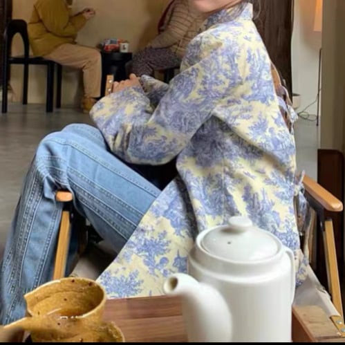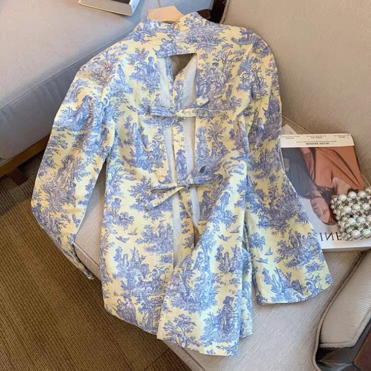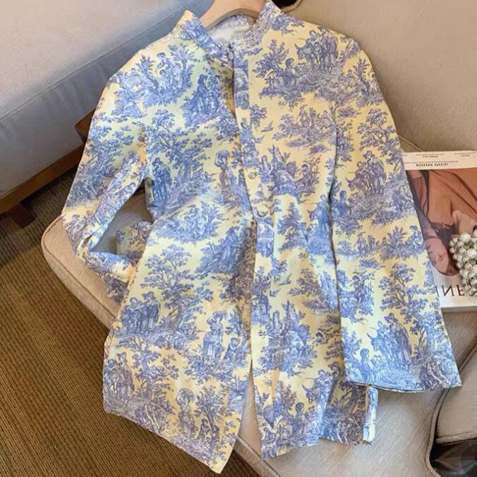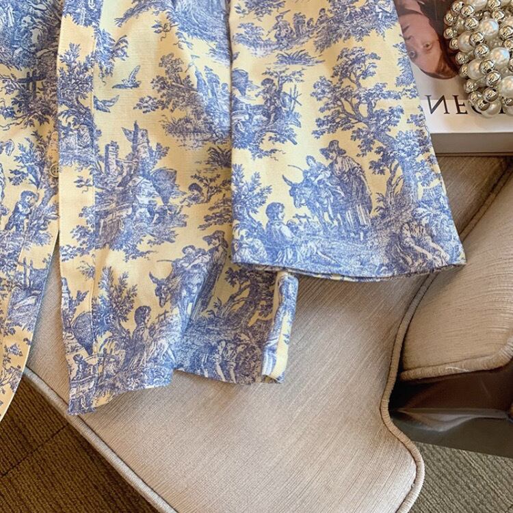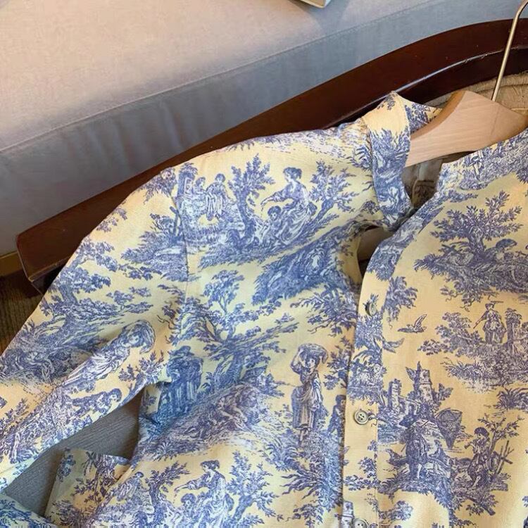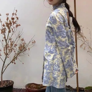 東インド会社貿易風プリントトワルドジュイデザインシャツbl-431701