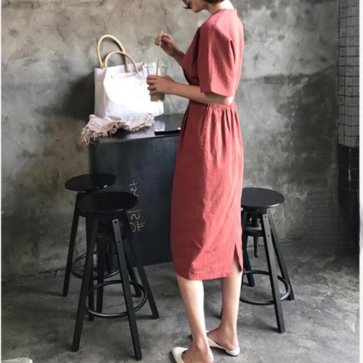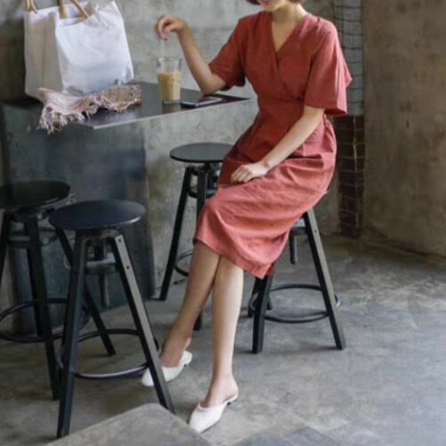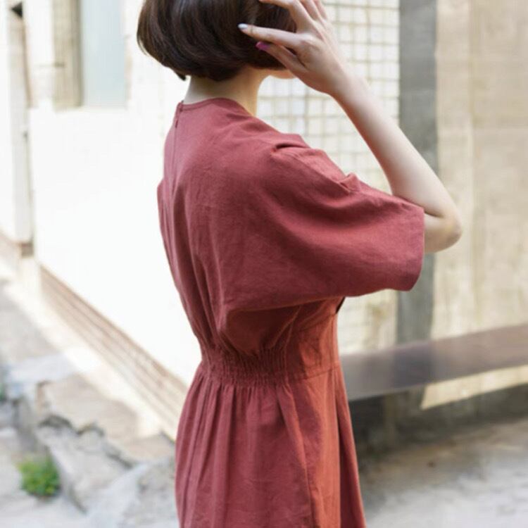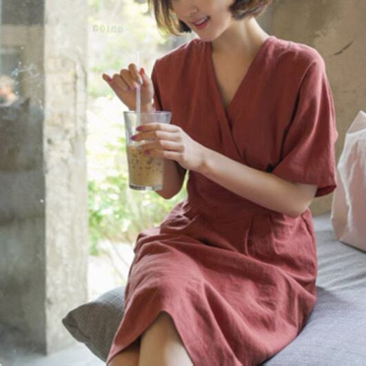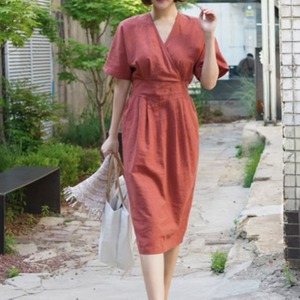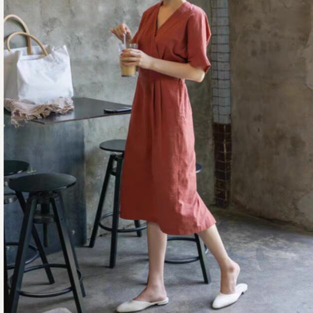 【Le choix de Wakako】Vネックコットンリネン(ラミー)ドレスop-431804