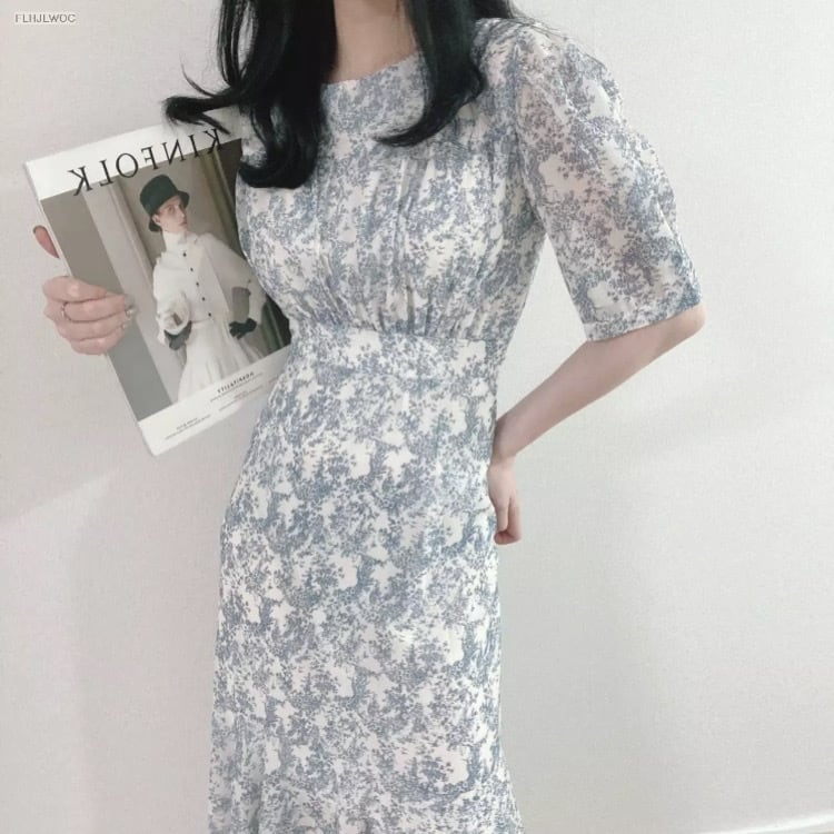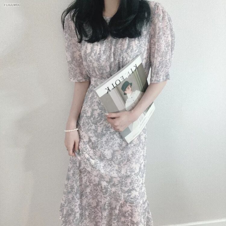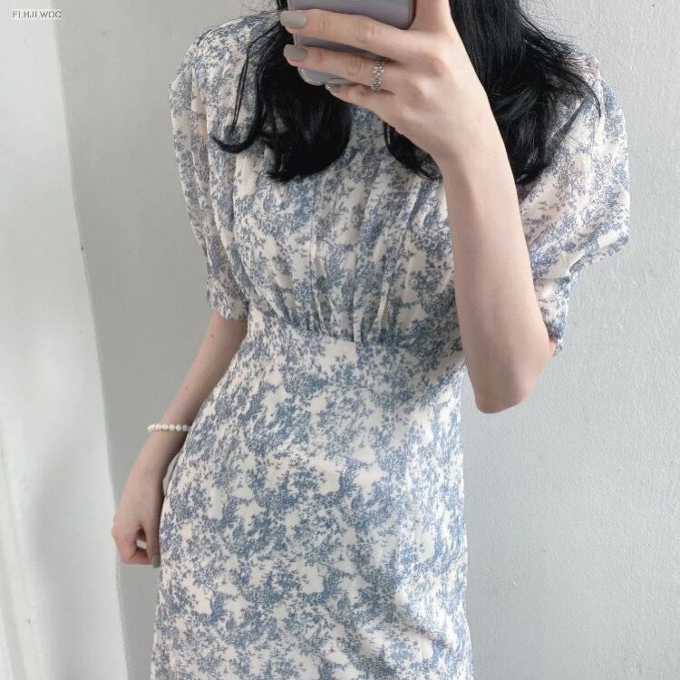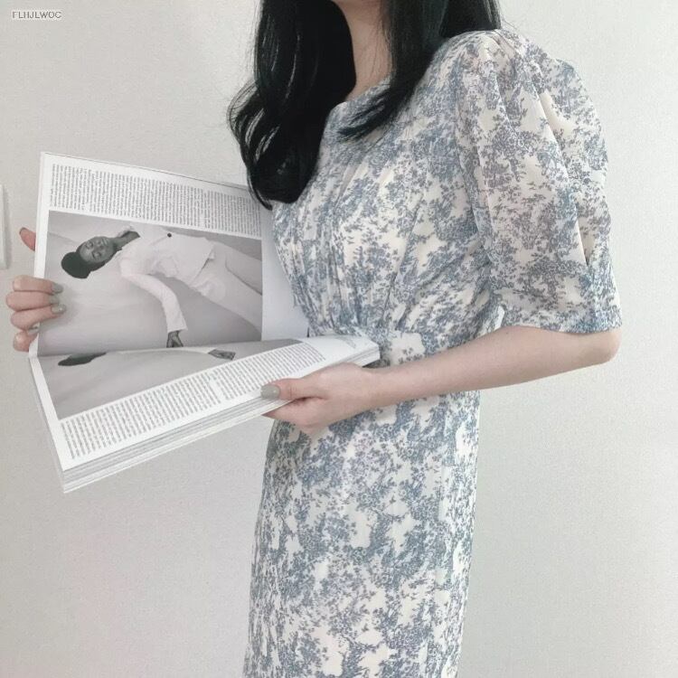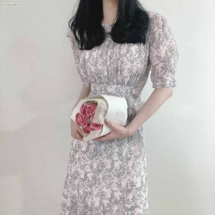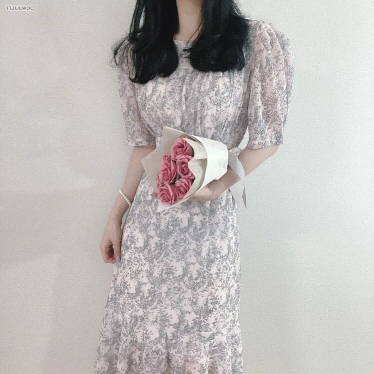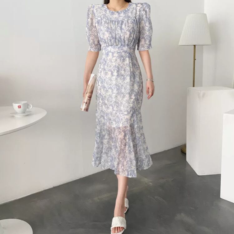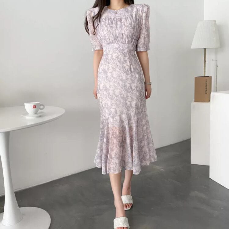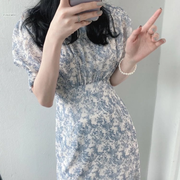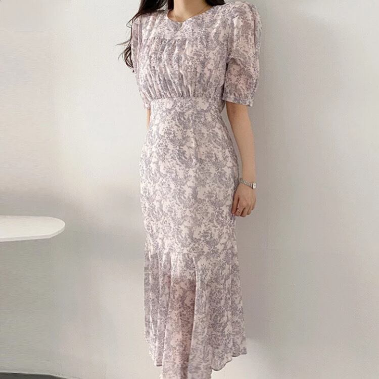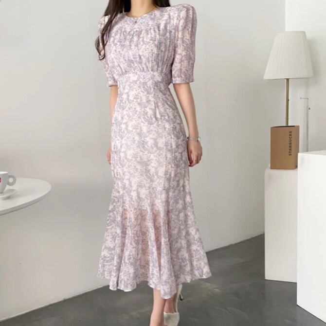 トワルドジュイエレガントフローラルシフォンパフスリーブドレスop250601