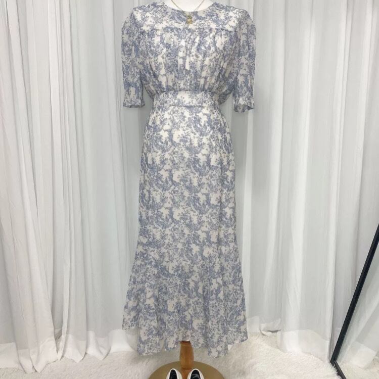 シンプルな花柄の連続でヴィンテージ感のあるプリントのワンピース。