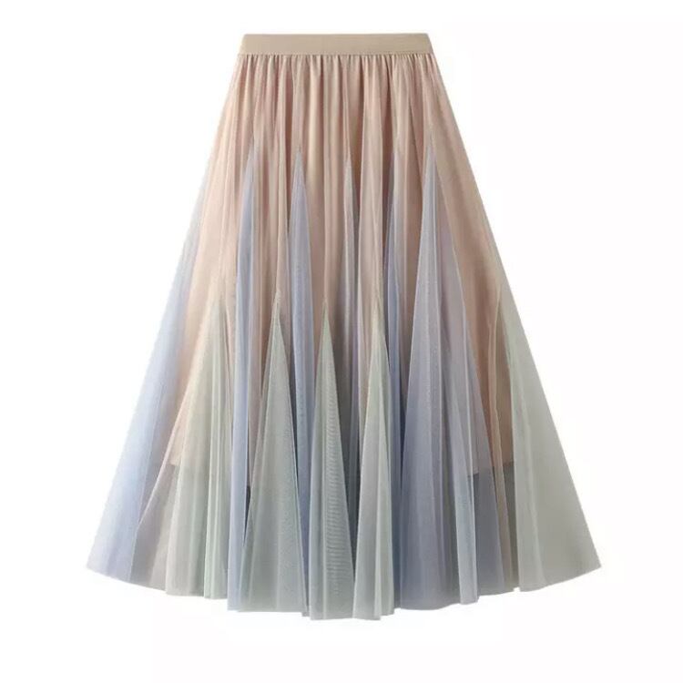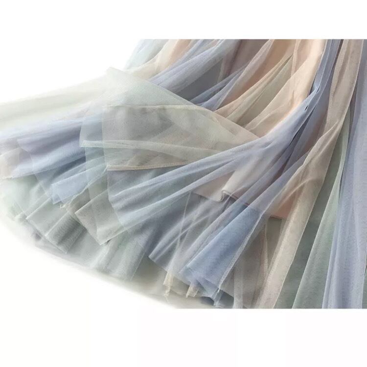 マキシプリーツチュールメッシュグラデーションカラースカートsk2051704