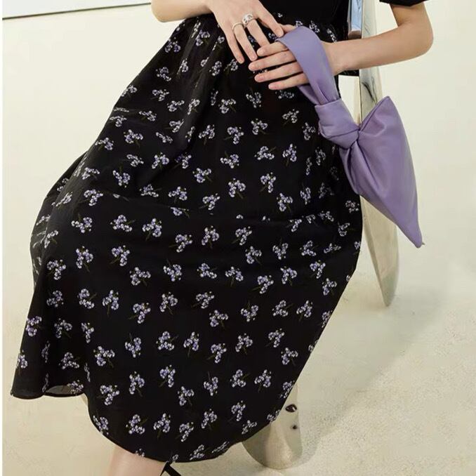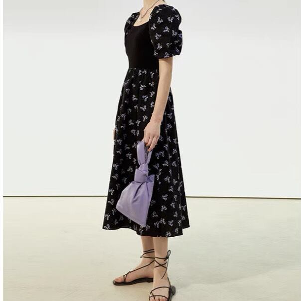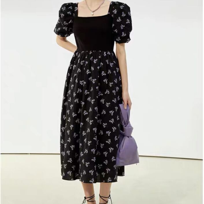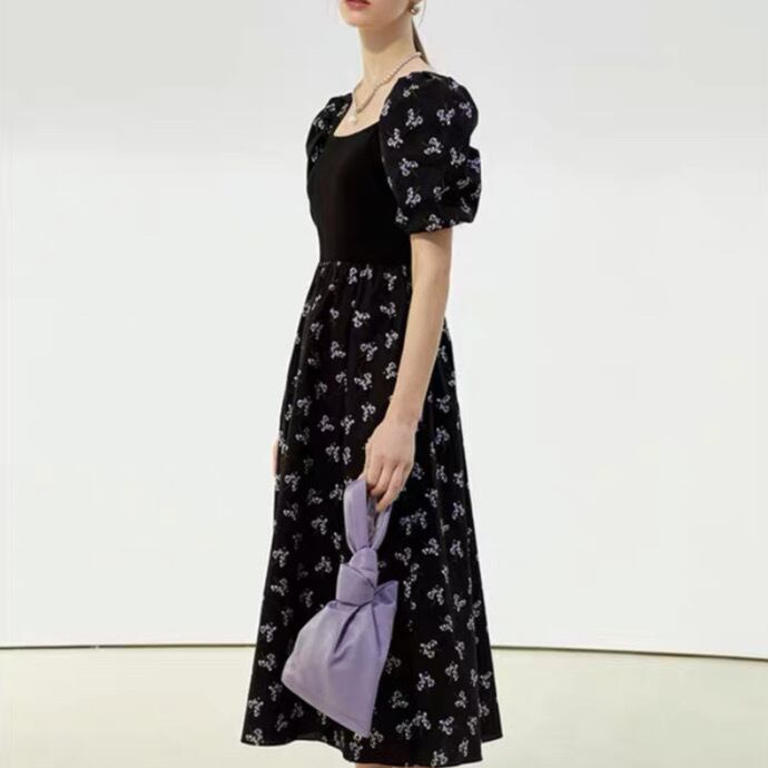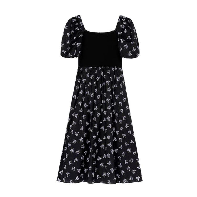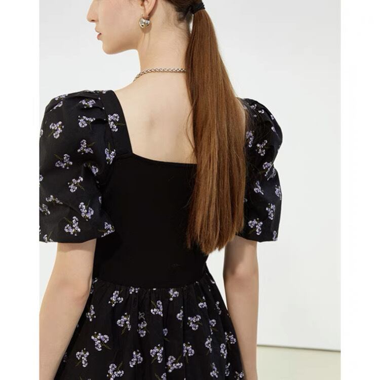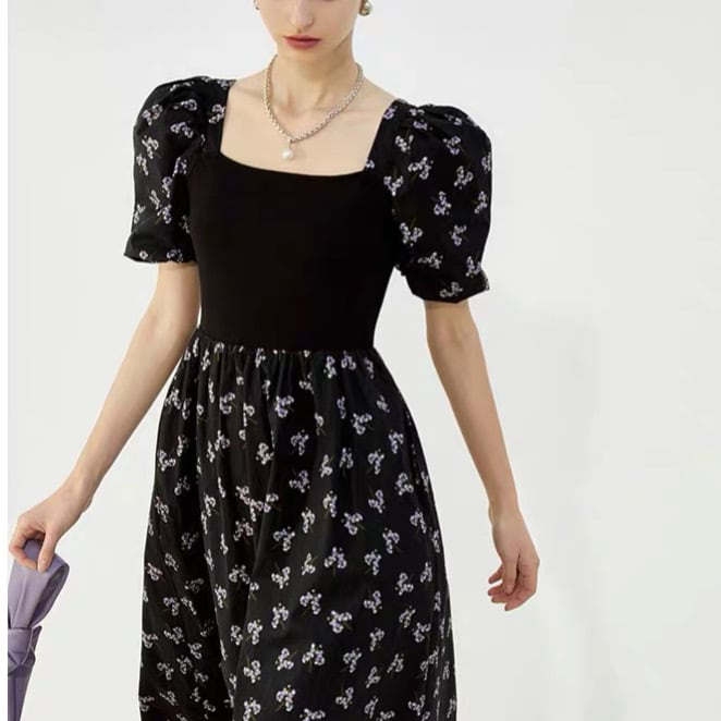 フレンチスクエアネックフローラルパフスリーブティーブレイクドレスop252001