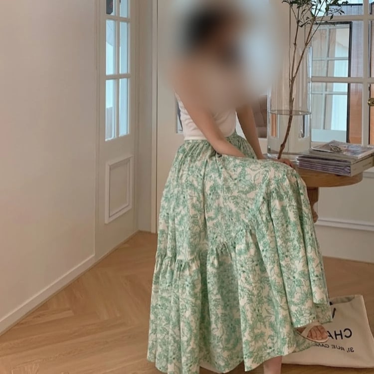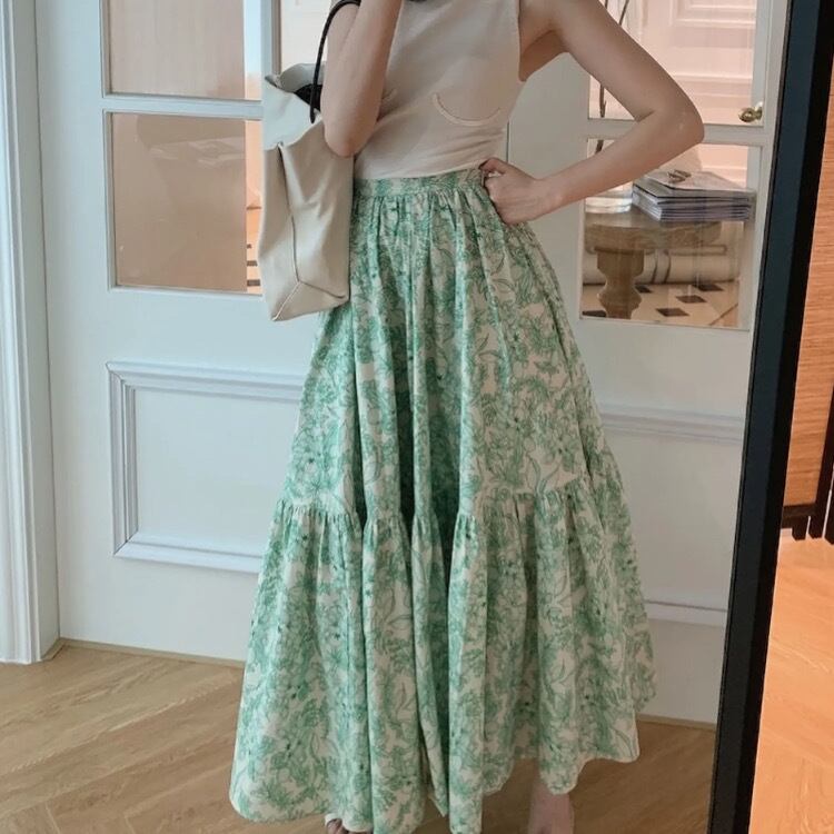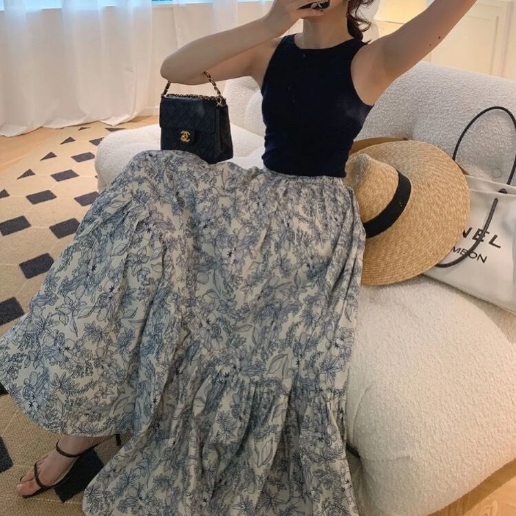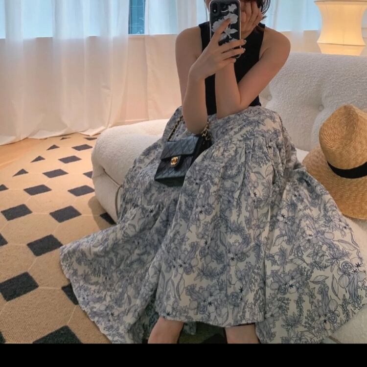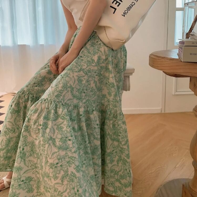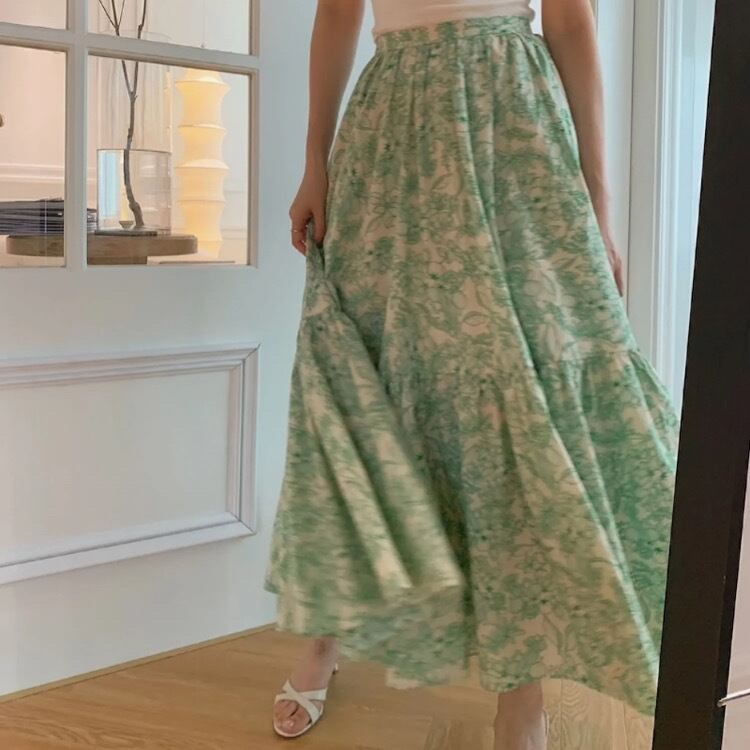 トワルドジュイ風野菜果物柄韓国コットン100%ミドル丈ビクトリアンスカートsk252201