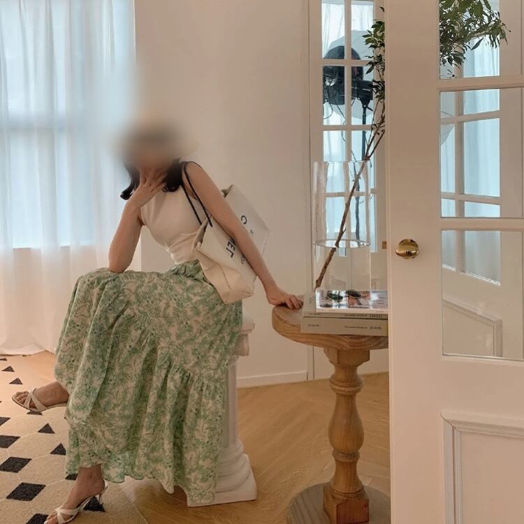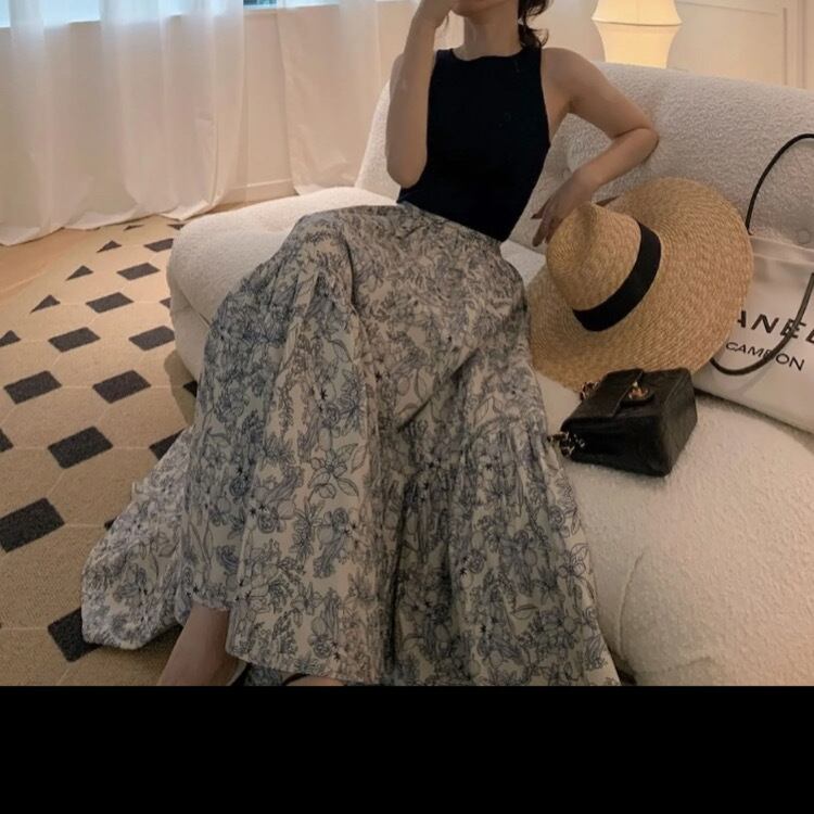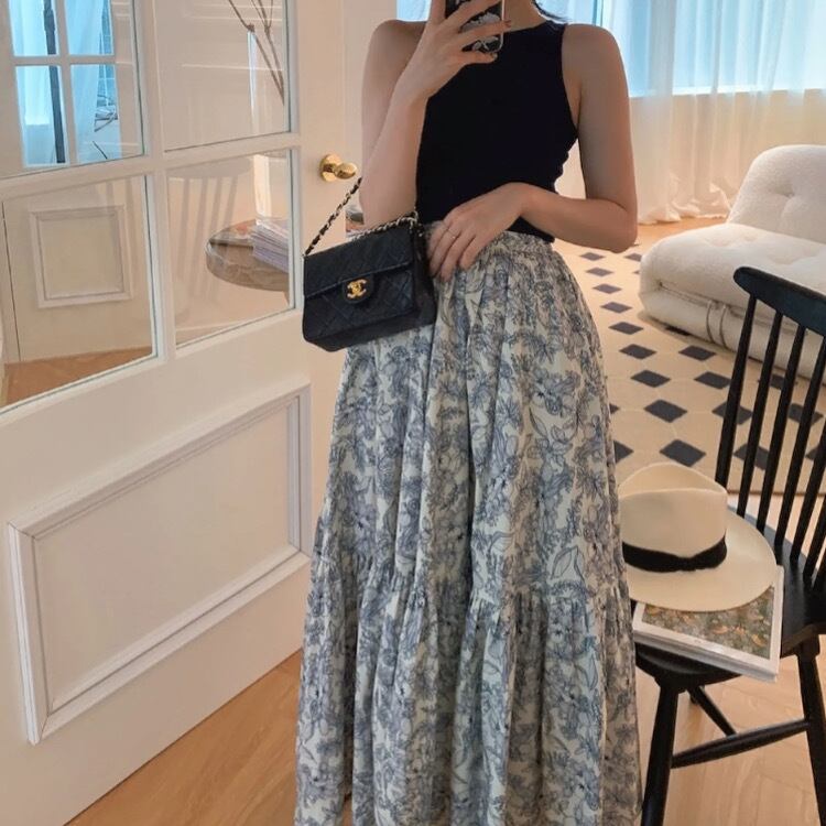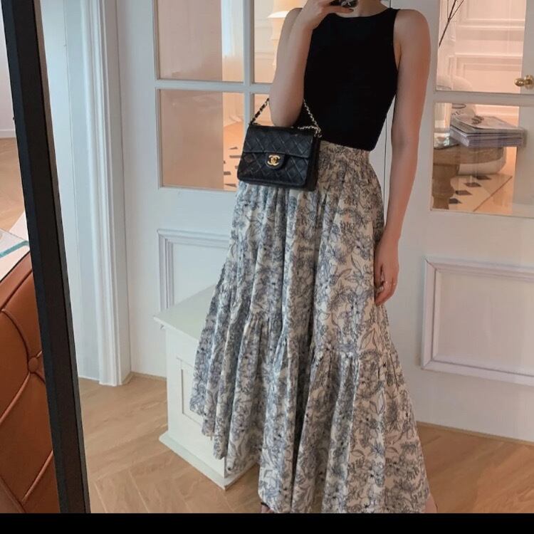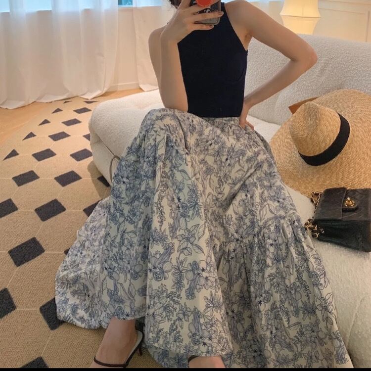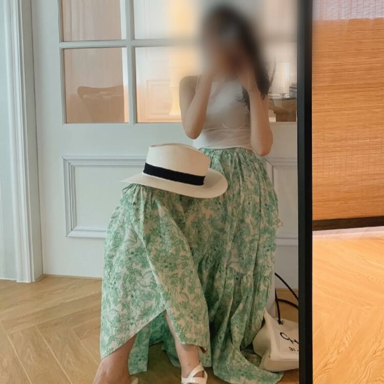 トワルドジュイ風野菜果物柄韓国コットン100%ミドル丈ビクトリアンスカートsk252201