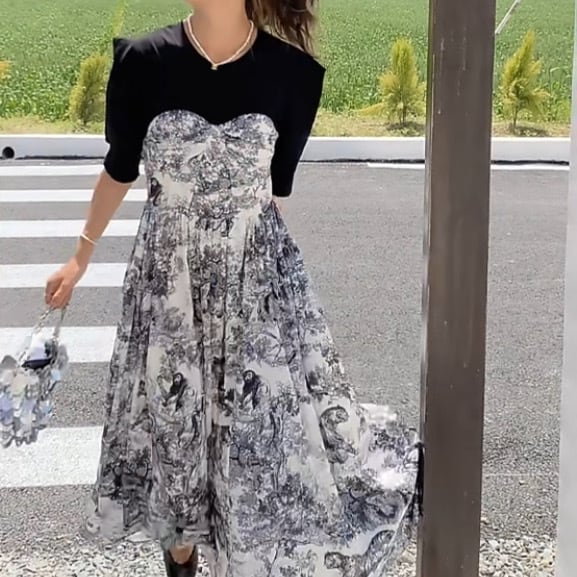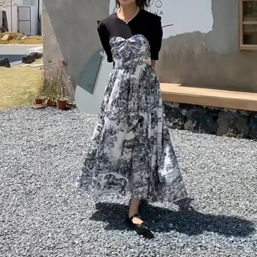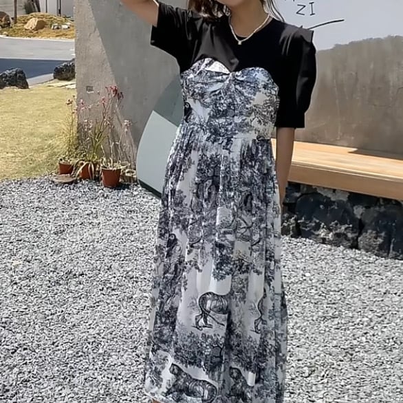 トワルドジュイフレンチフェイクツーピースロングスカートop260901