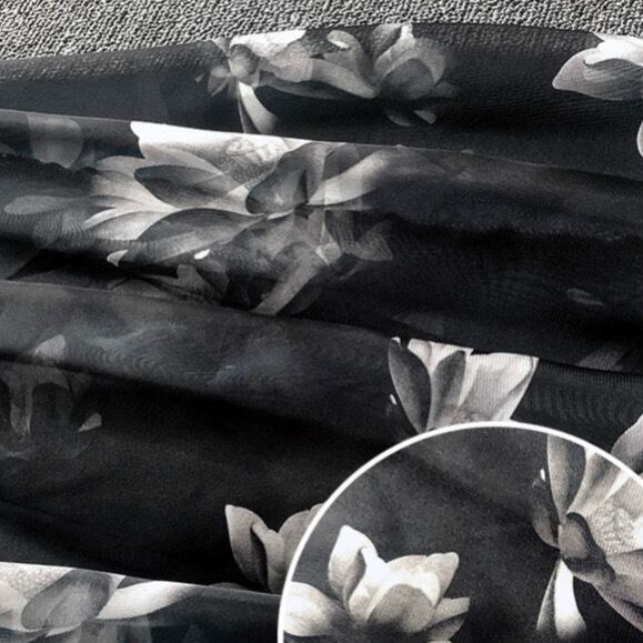 モノトーンの中に柔らかさを感じる芍薬の花柄。