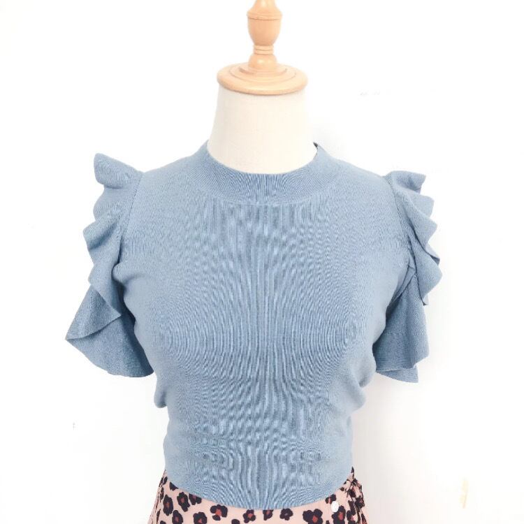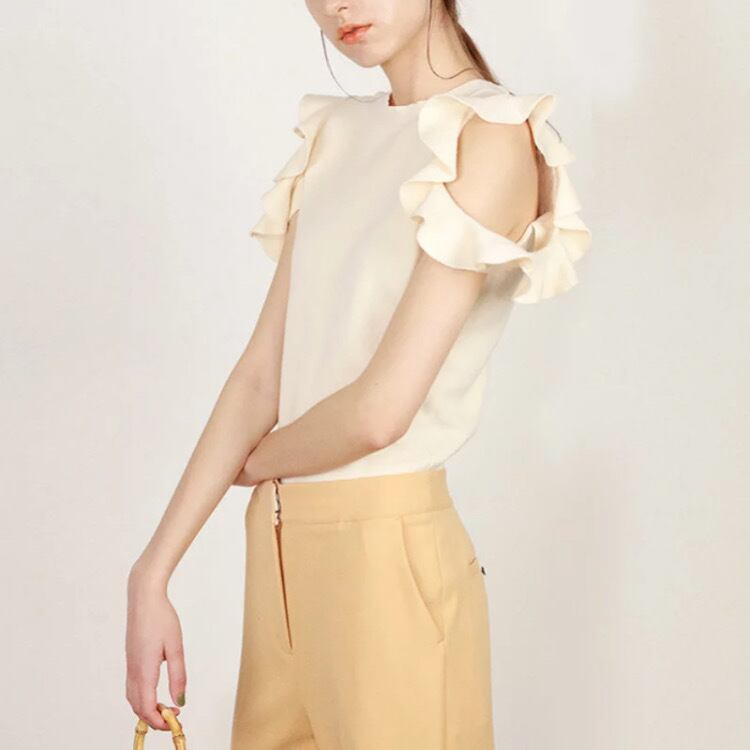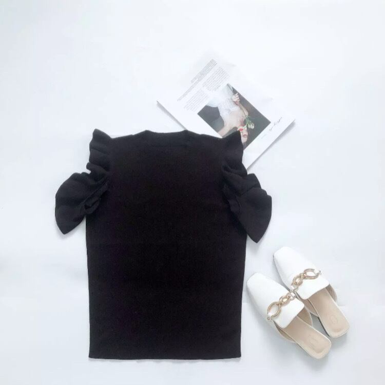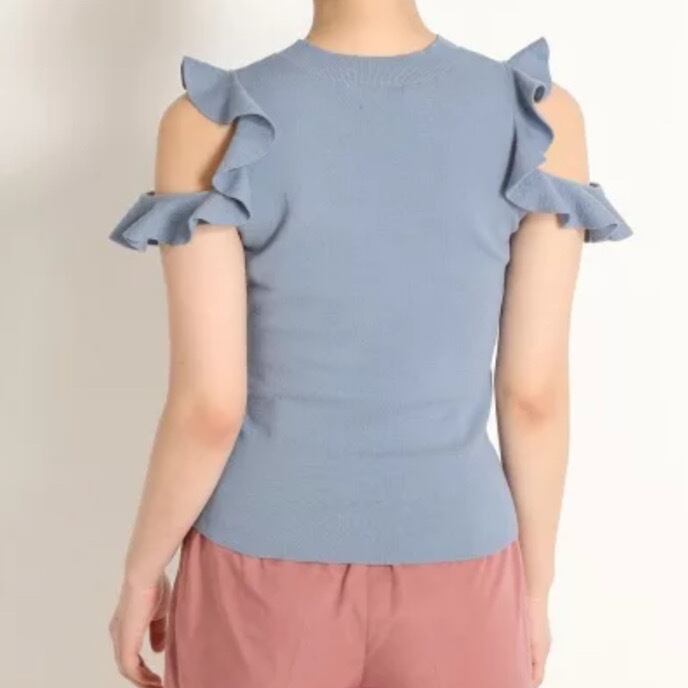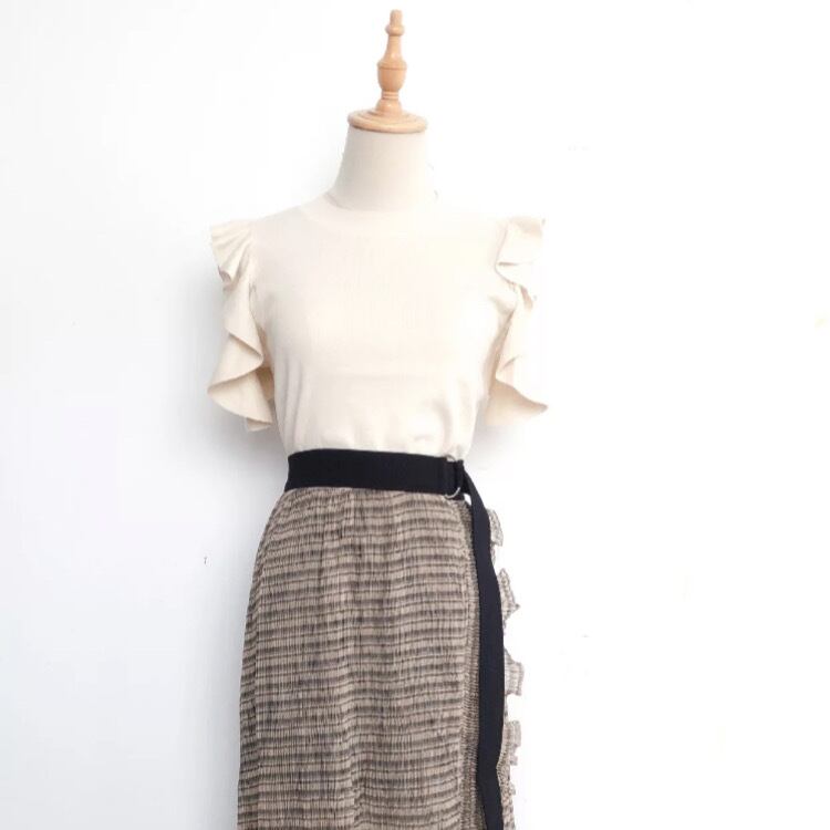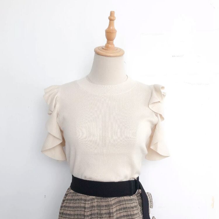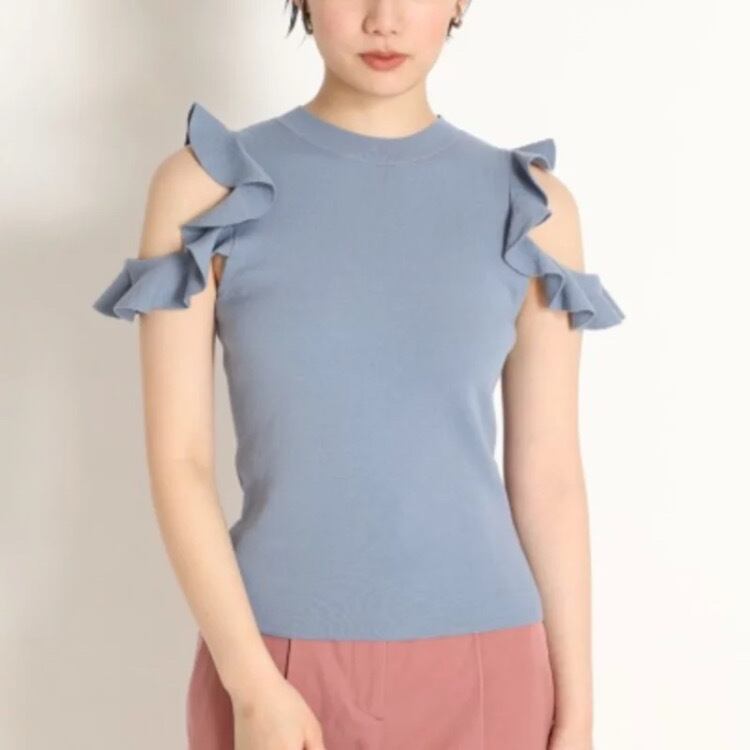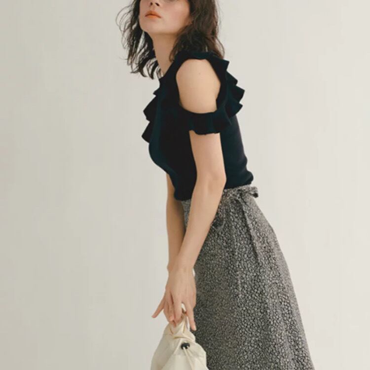 エレガント春夏秋ストラップレスフリルショルダーニットfsn270101