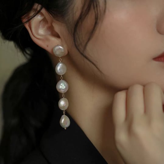 光の強いバロックパールだから顔映りがとても綺麗。お肌を明るくキメ細やかに見せます。