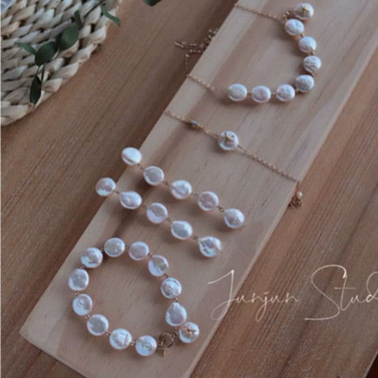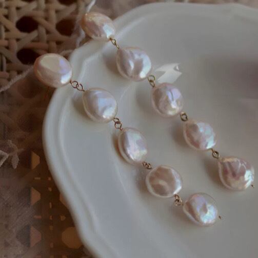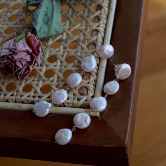 コインパールのネックレスをほどいて作ったようなレトロなデザイン。