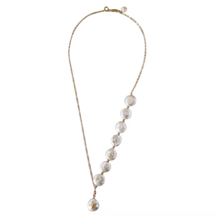 【Le choix de Wakako】ハンドメイドジュエリー14KGFバロックボタンパールYワードネックレスhmjgbpyn2701001