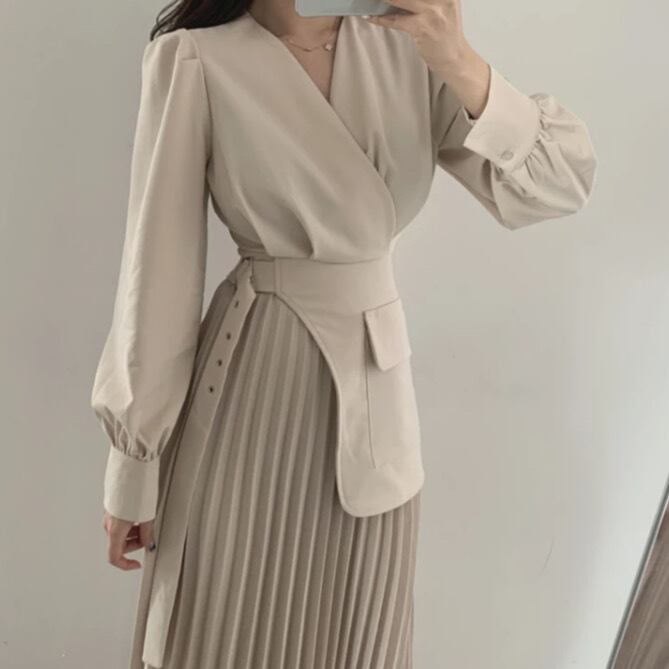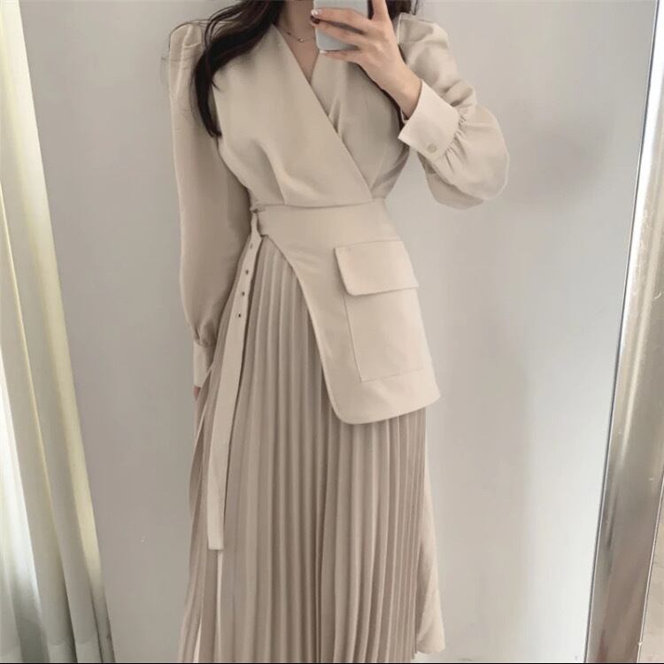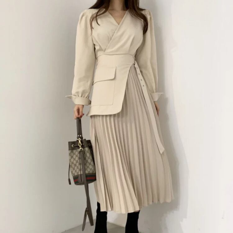 スーツのようなドレスは、ワンピースとツーピースの良い所取り。