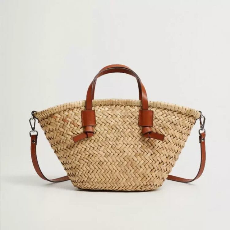 気軽に持てるわらとPUのバッグ。