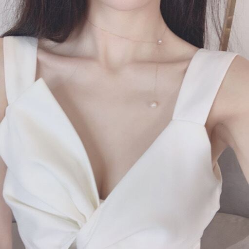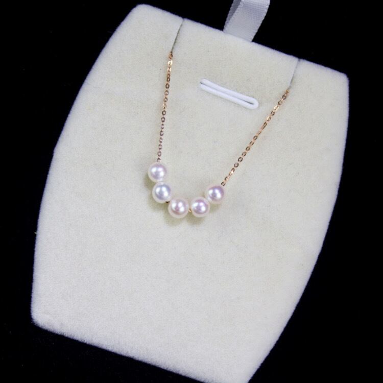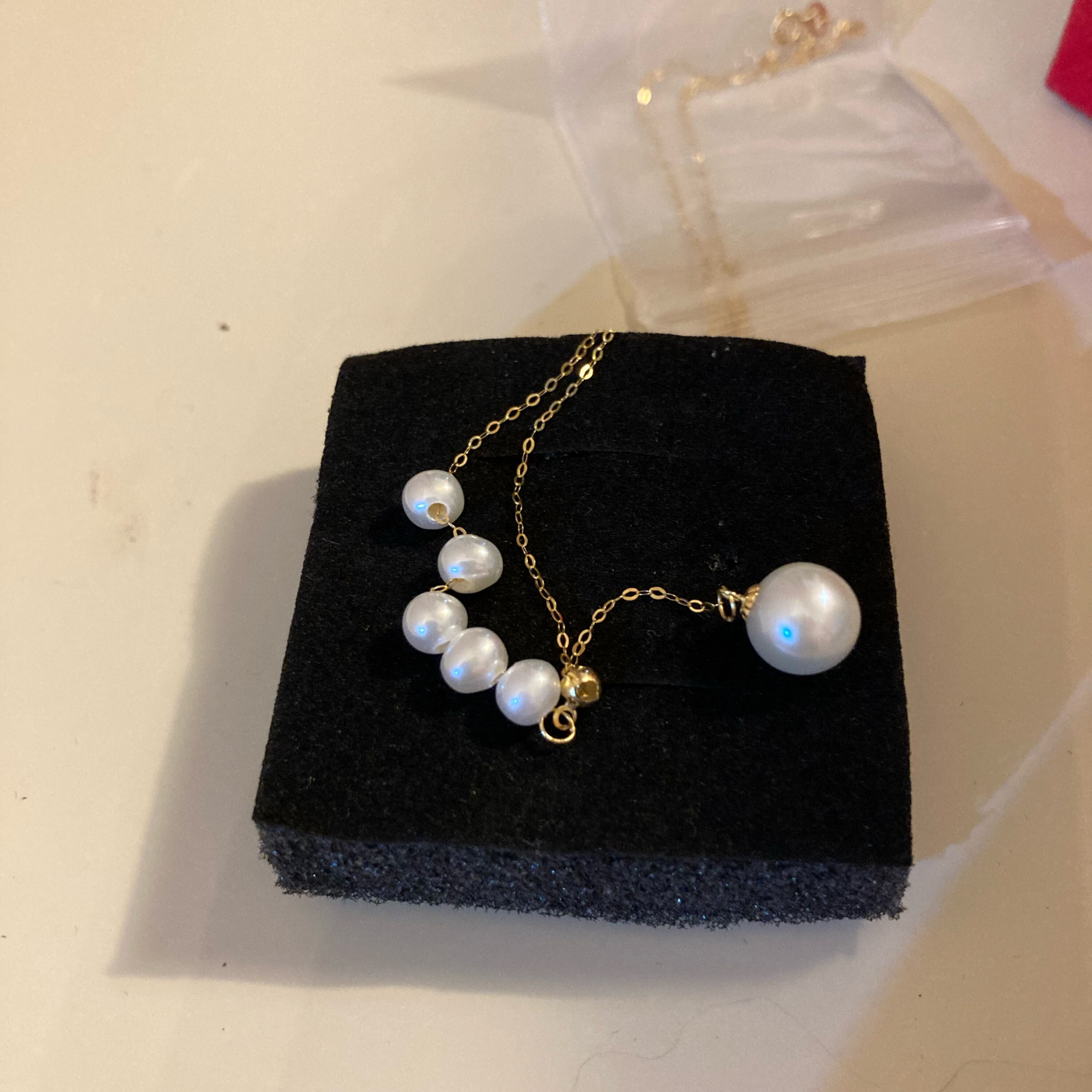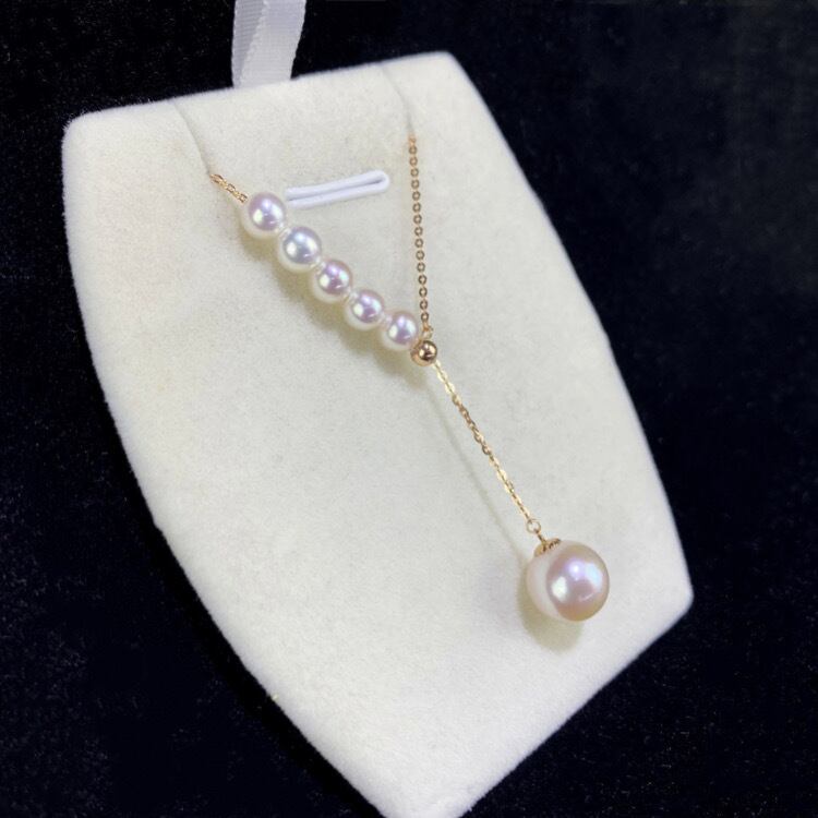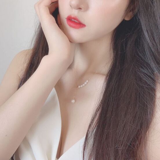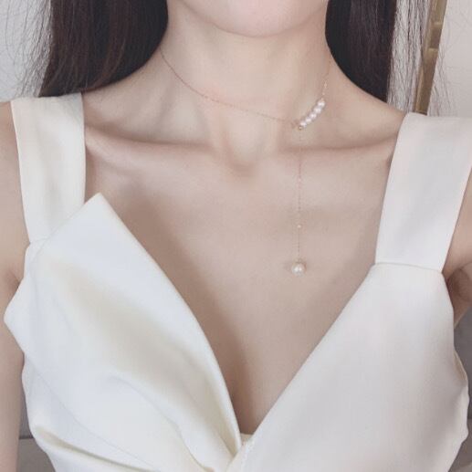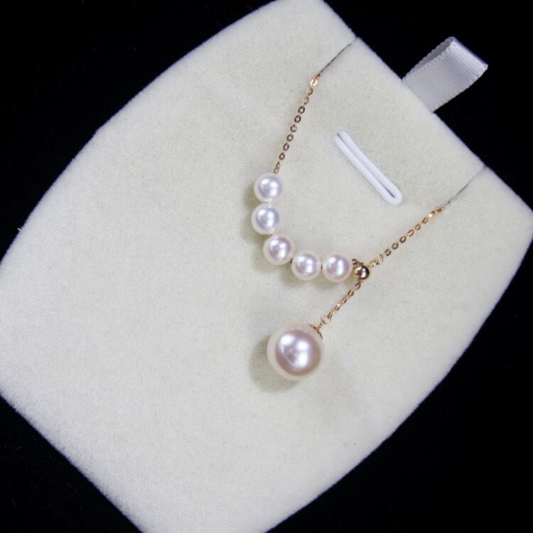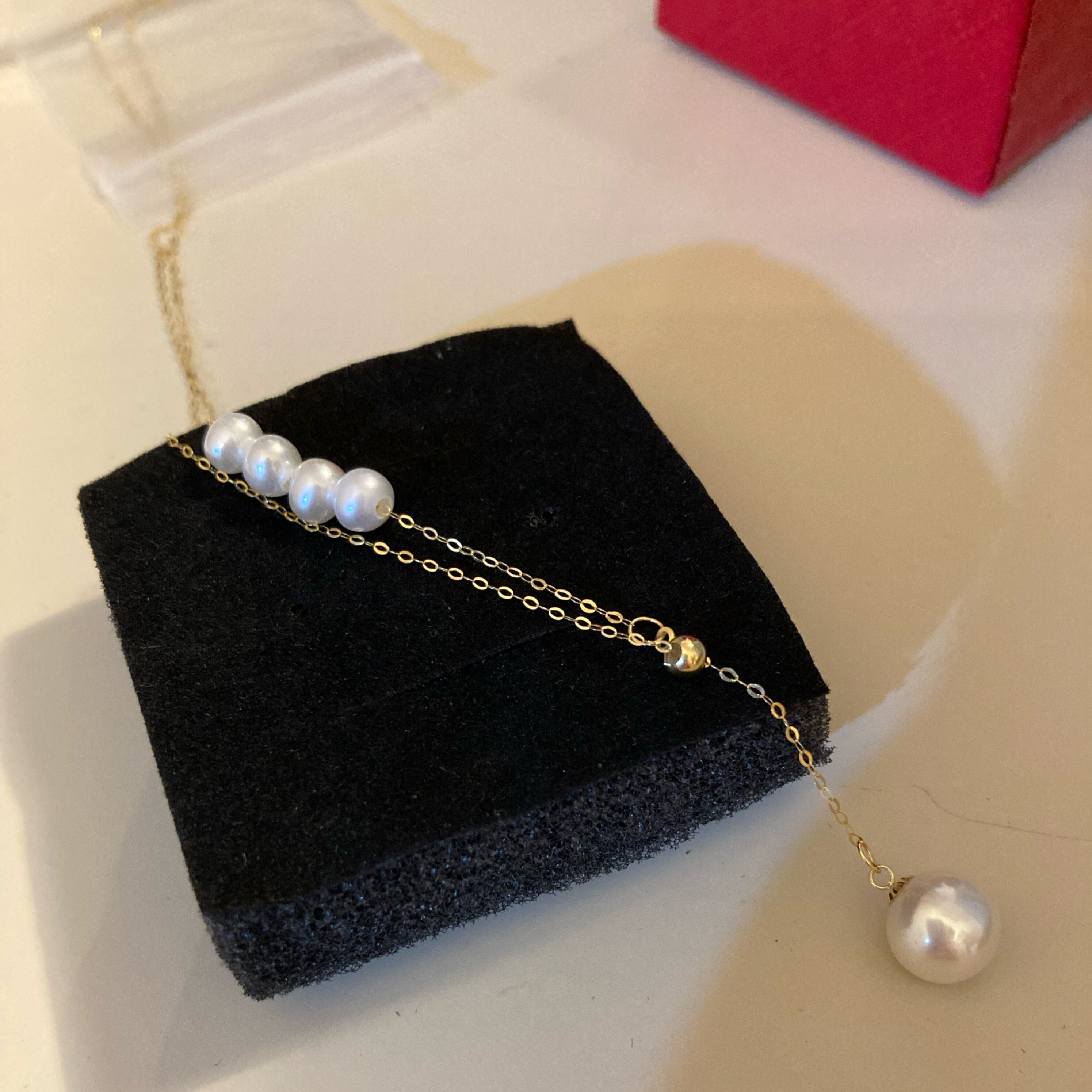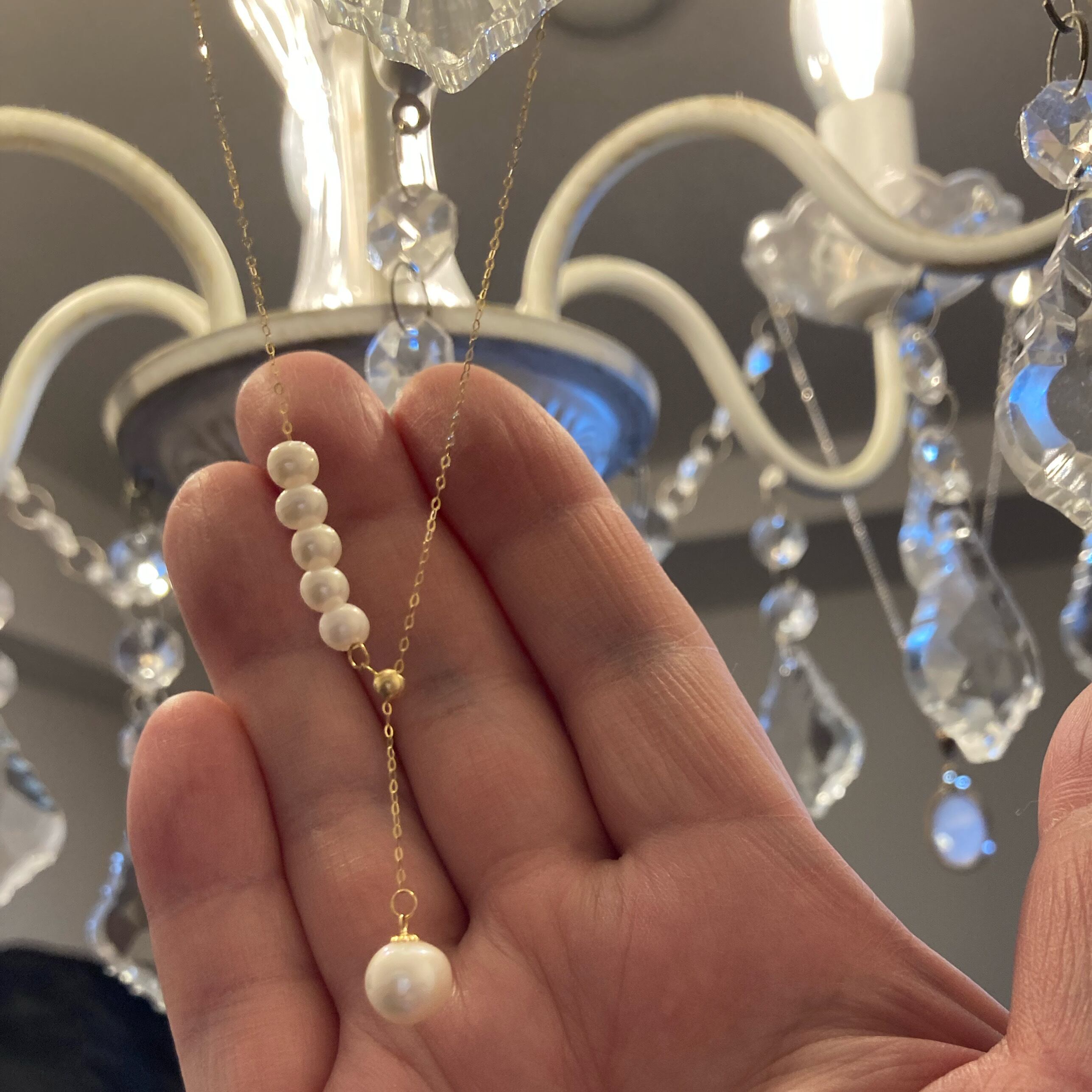 Y字形にもなれば、5粒パールが並ぶネックレスにもなります。他にも研究してみて。