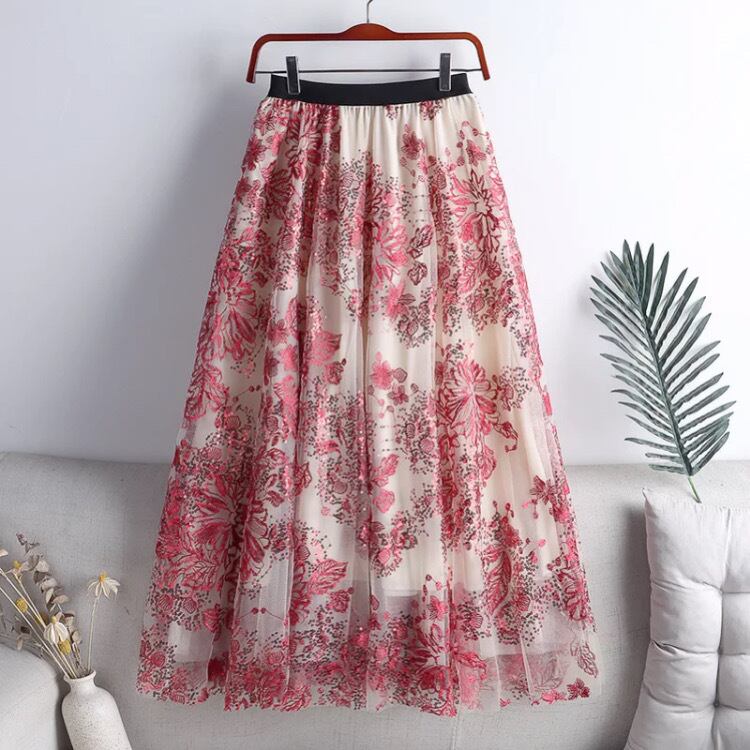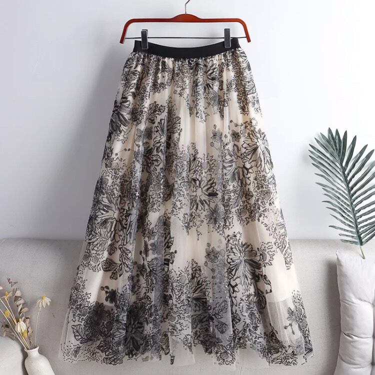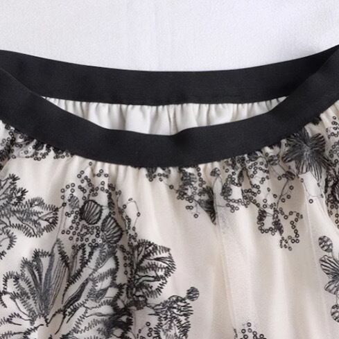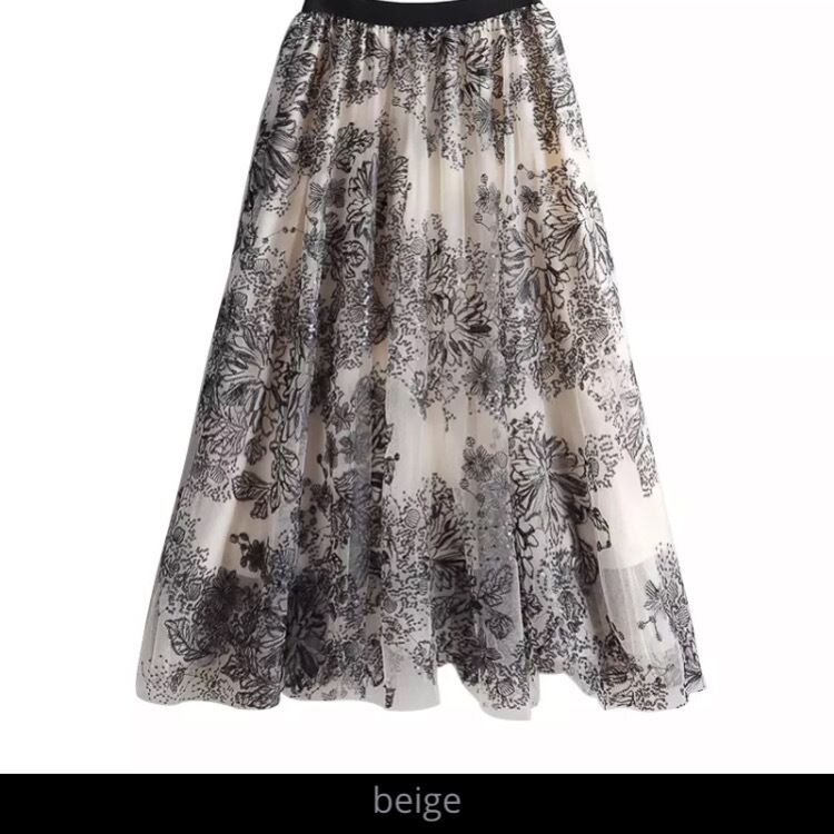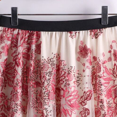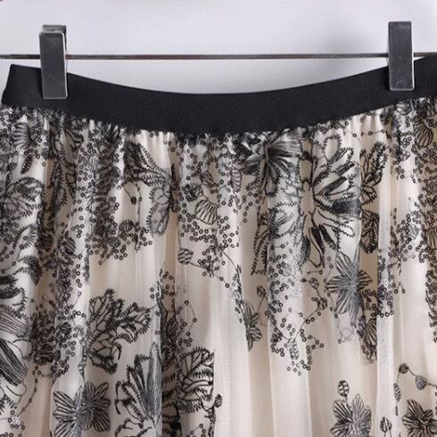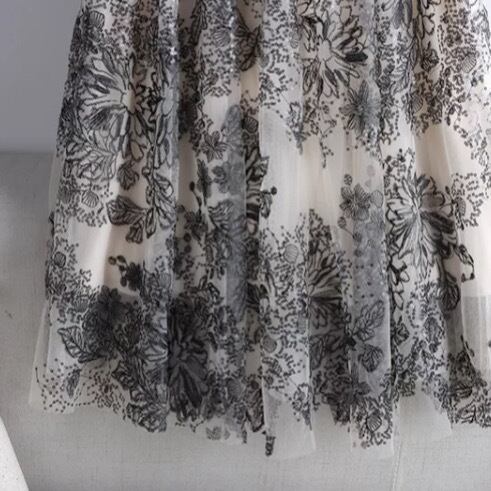 チュールに細かい刺繍模様がプチゴージャスなスカート。