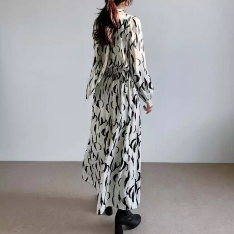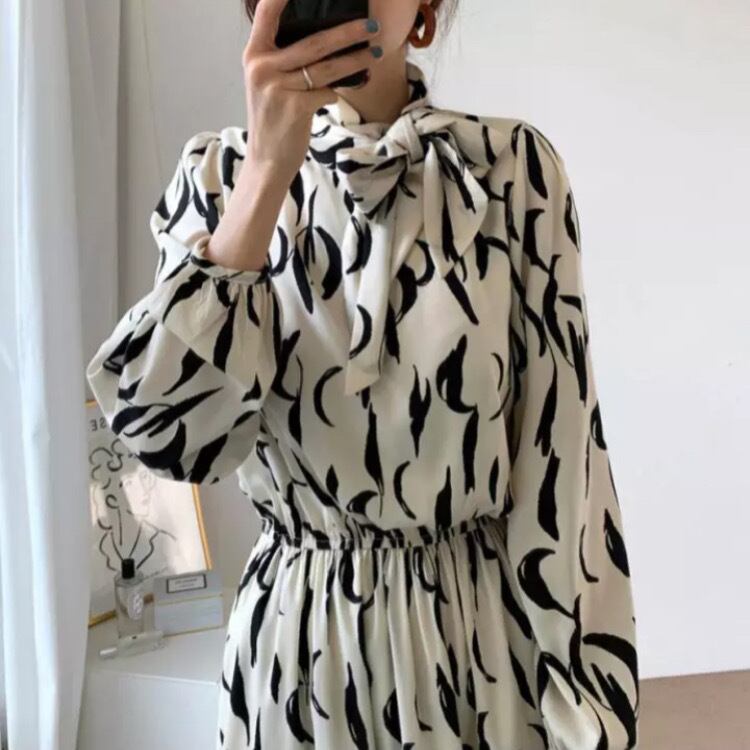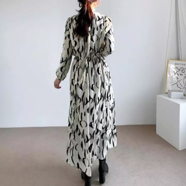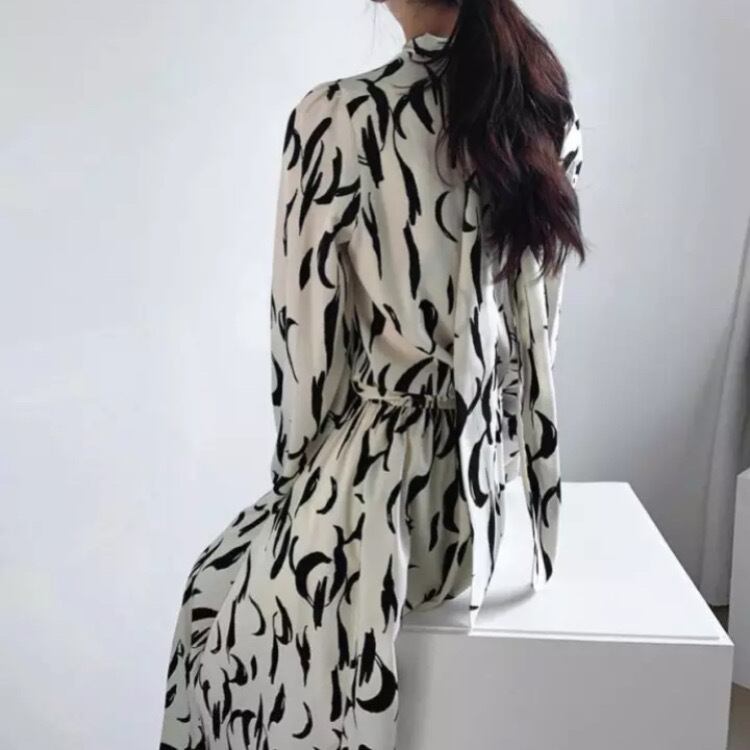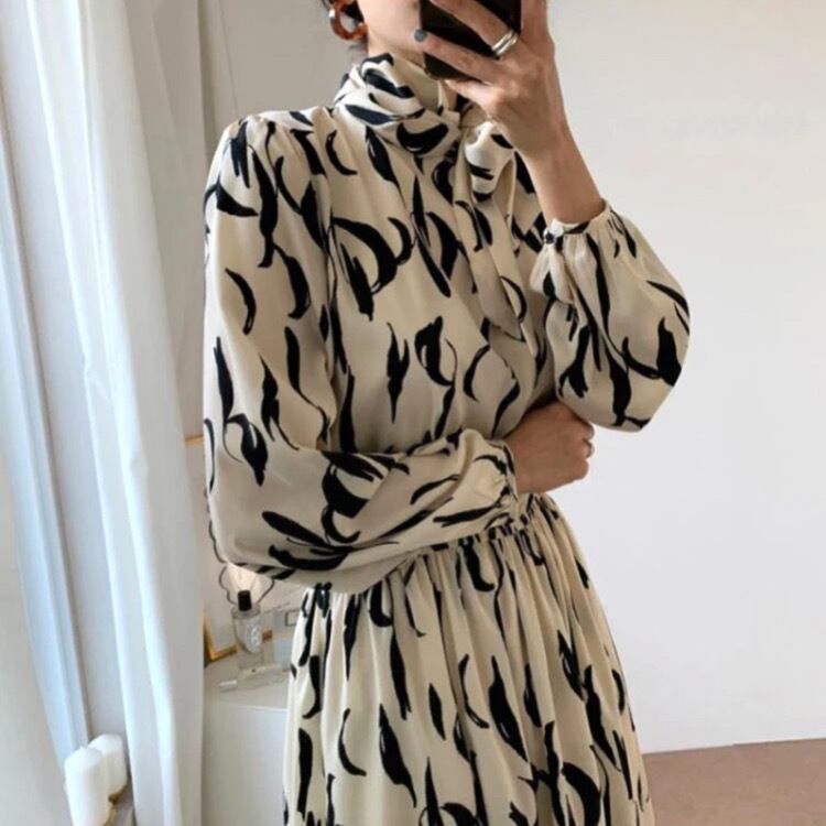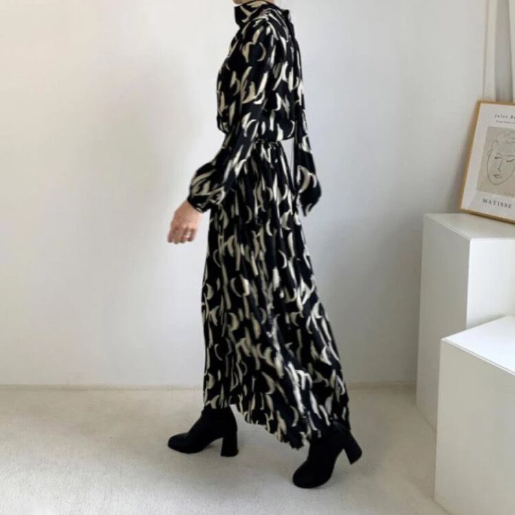 ハイネックのテロンとしたワンピースは着やすく首からデコルテが冷たい空気に触れないので、