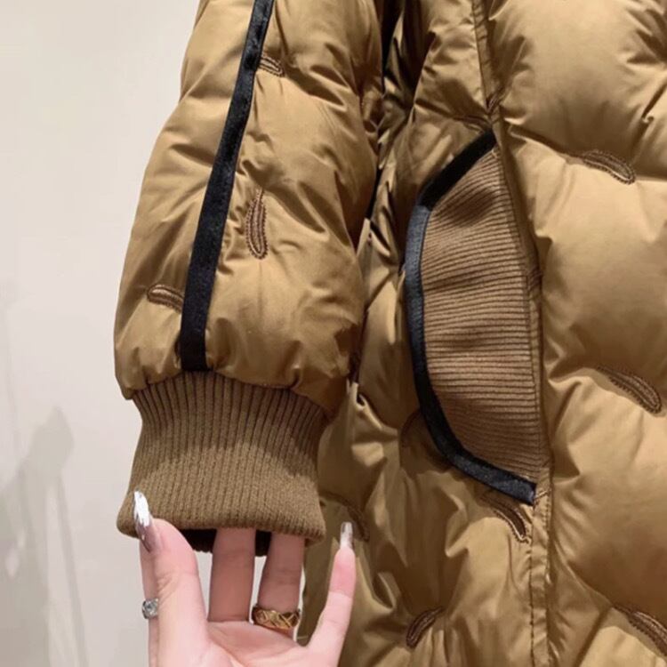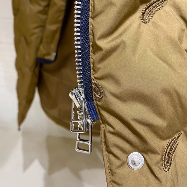 キルトを絞る所に羽にも葉にも見えるモチーフが刺繍された丁寧なデザインです。