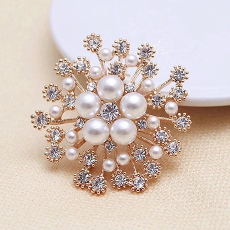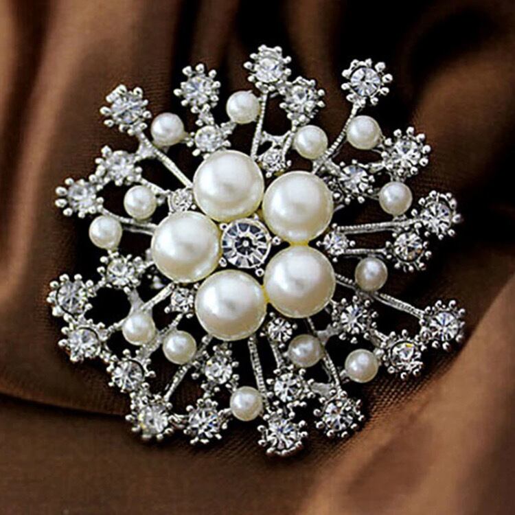 スノーフレークパールクリスタルブローチ31293