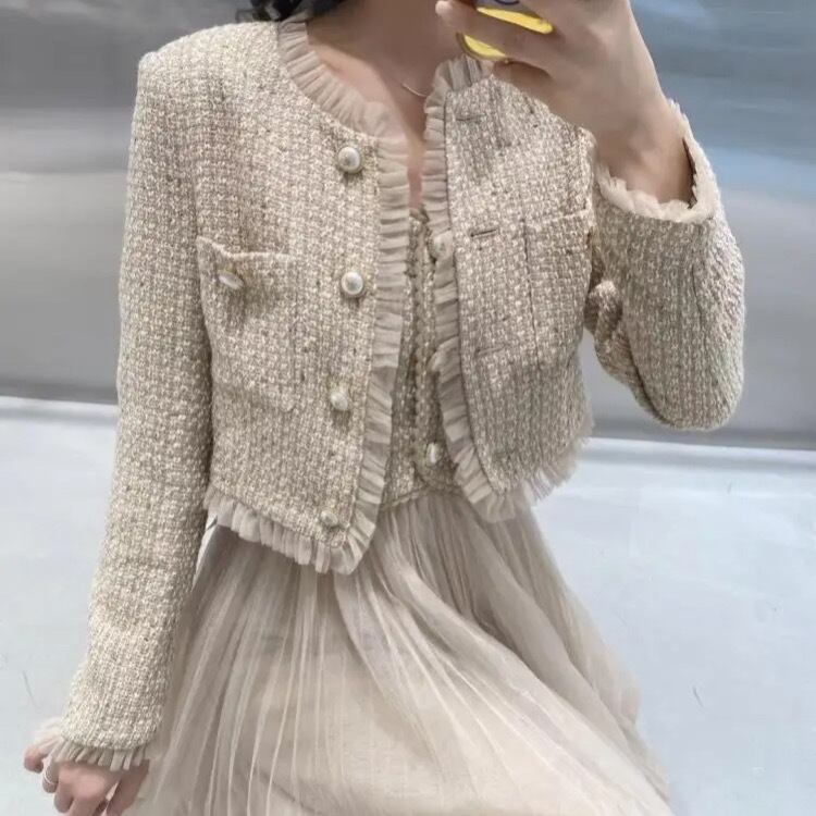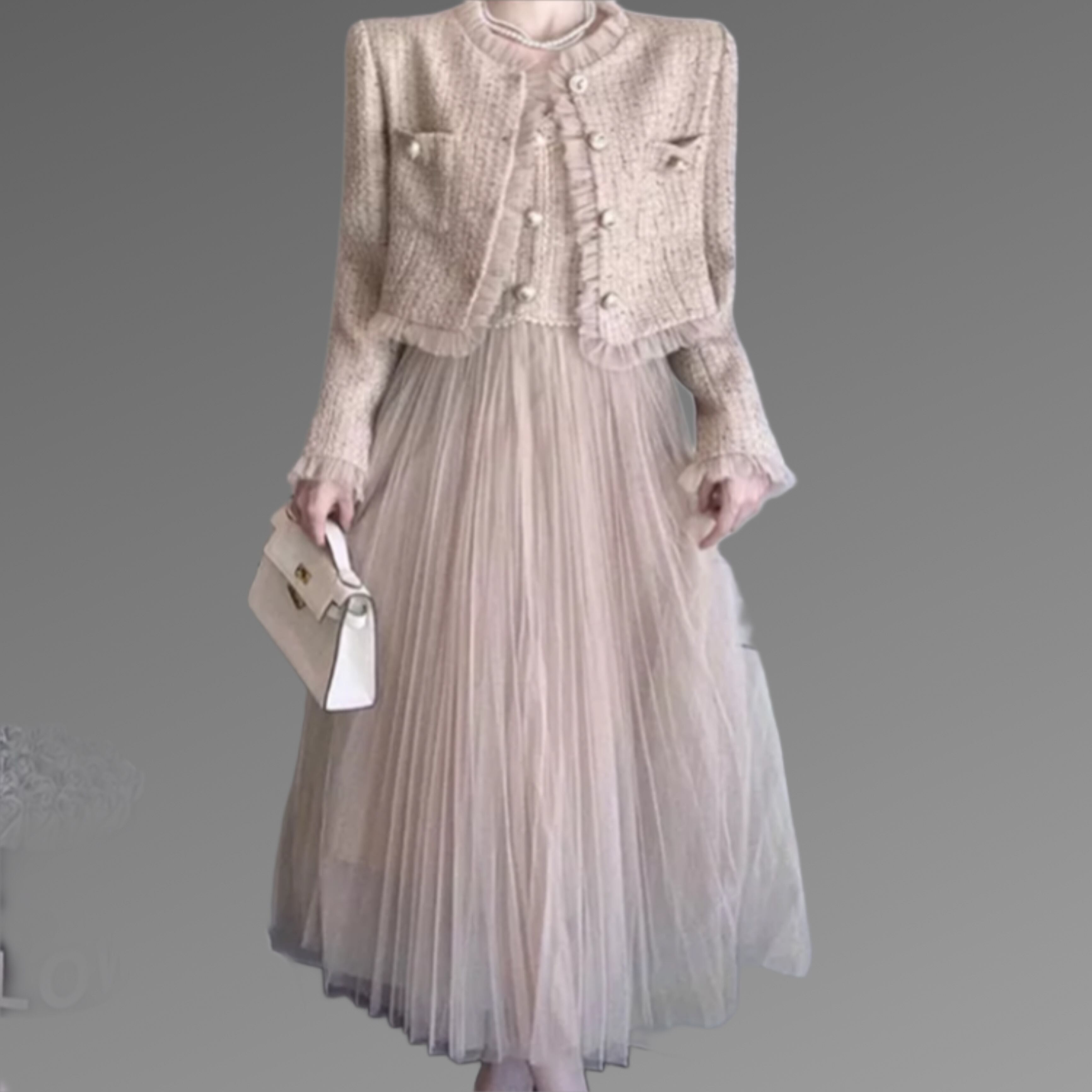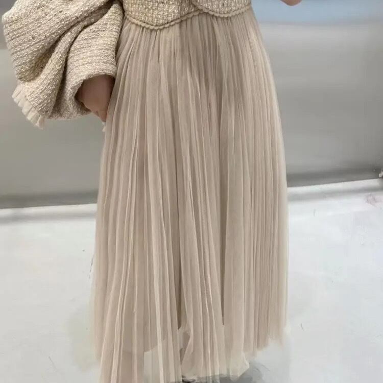 スカートはふんわりチュールで華やかさとトレンドを意識したお洒落なスーツ。