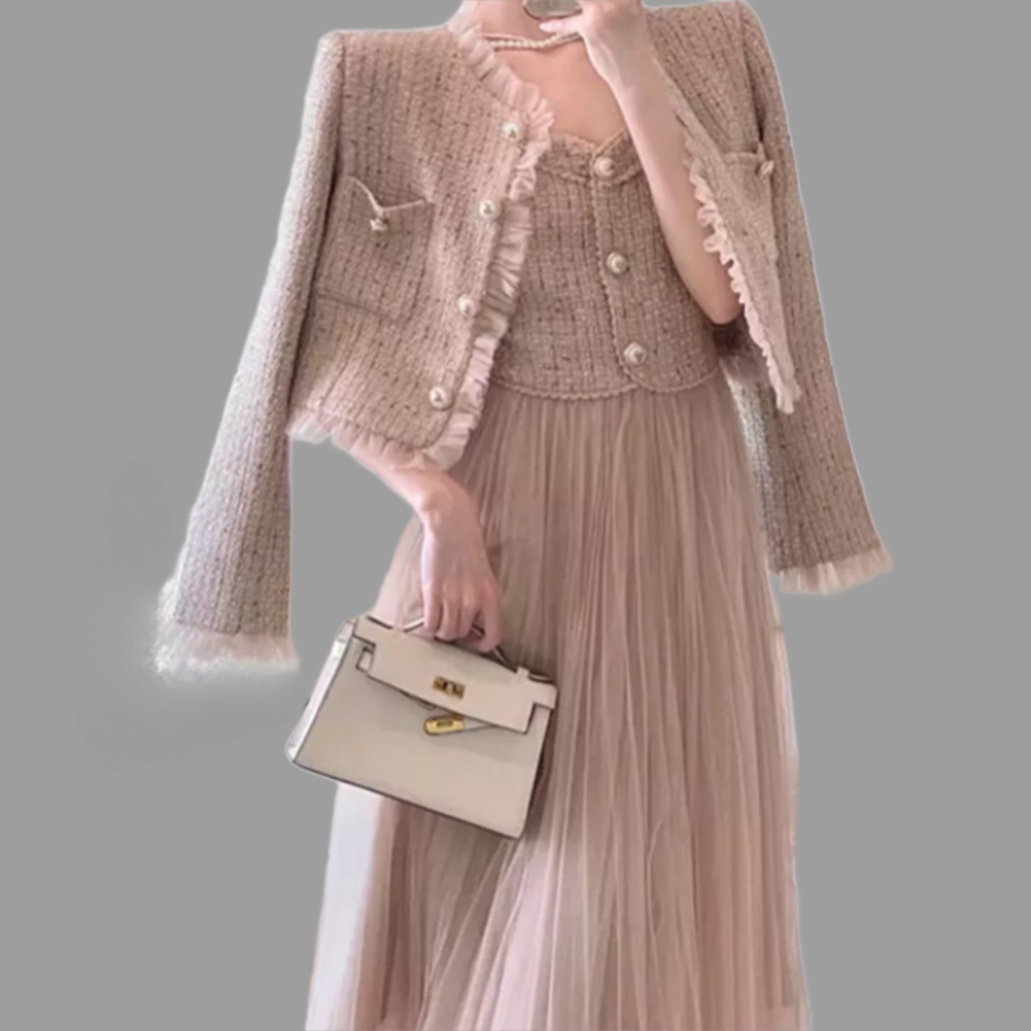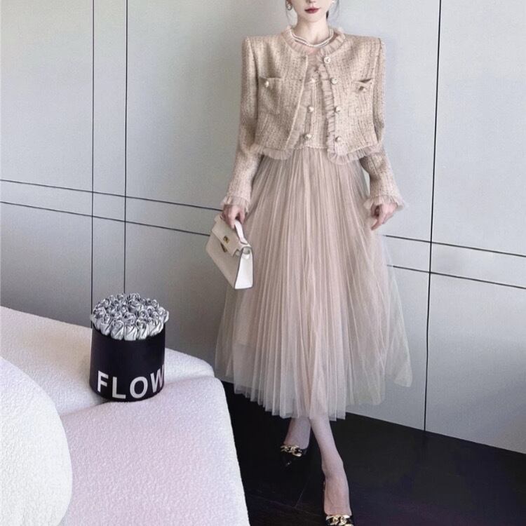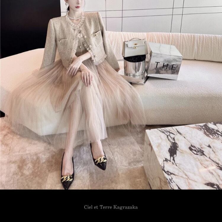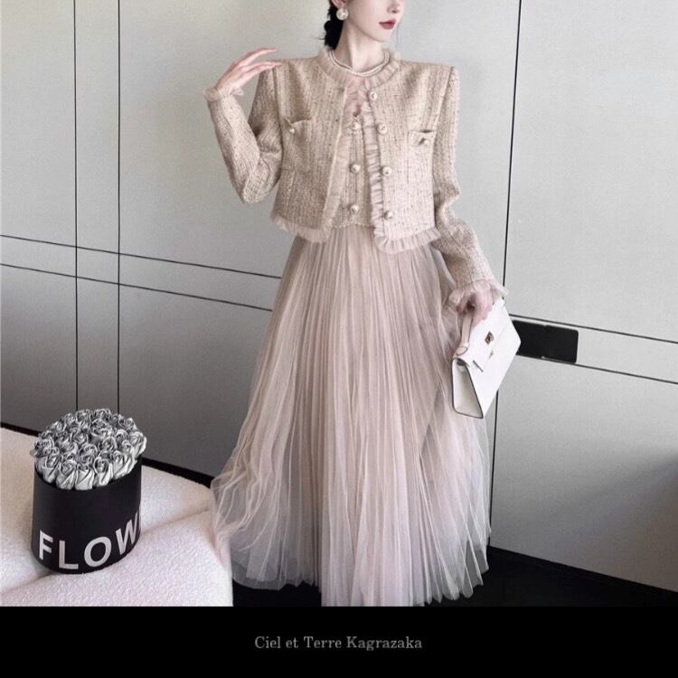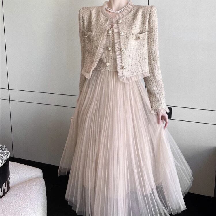 ヴィンテージベスト風メッシュドレス&ジャケット2ピース3211