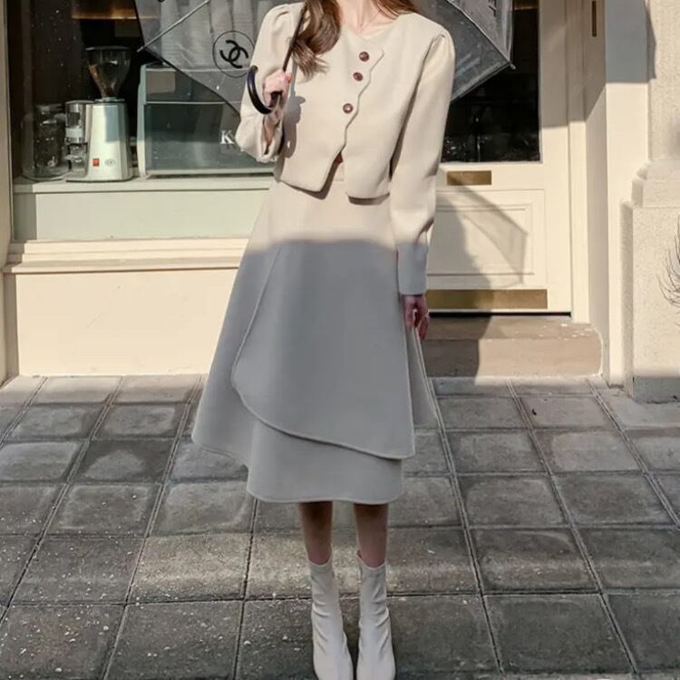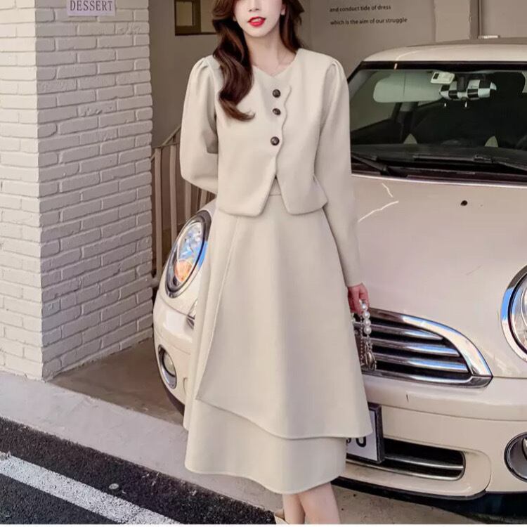 堅苦しくないデザイン、それでいてきちんとしているツーピースです。