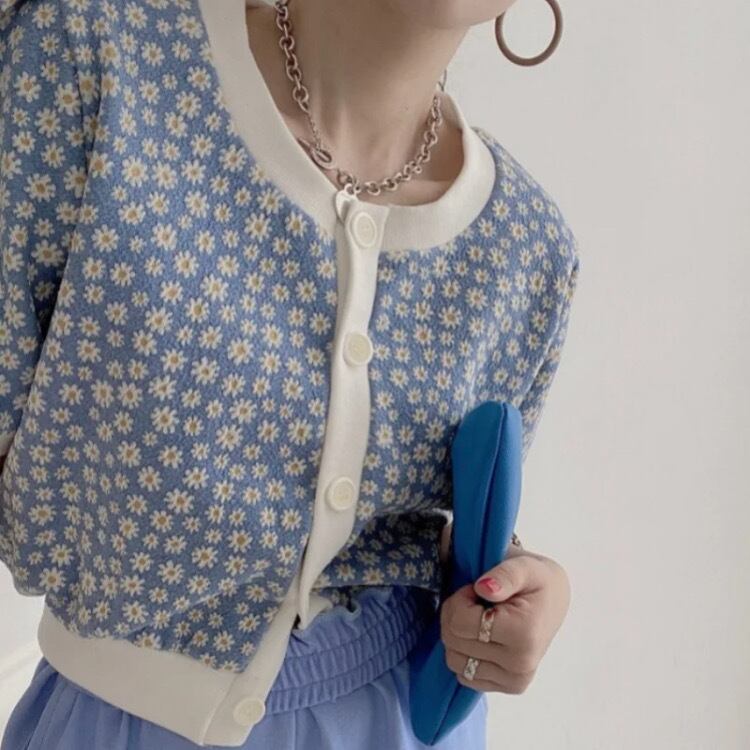 フラワーニット半袖カーディガン3393