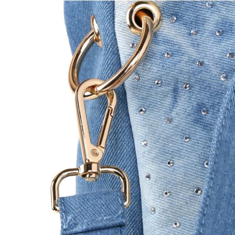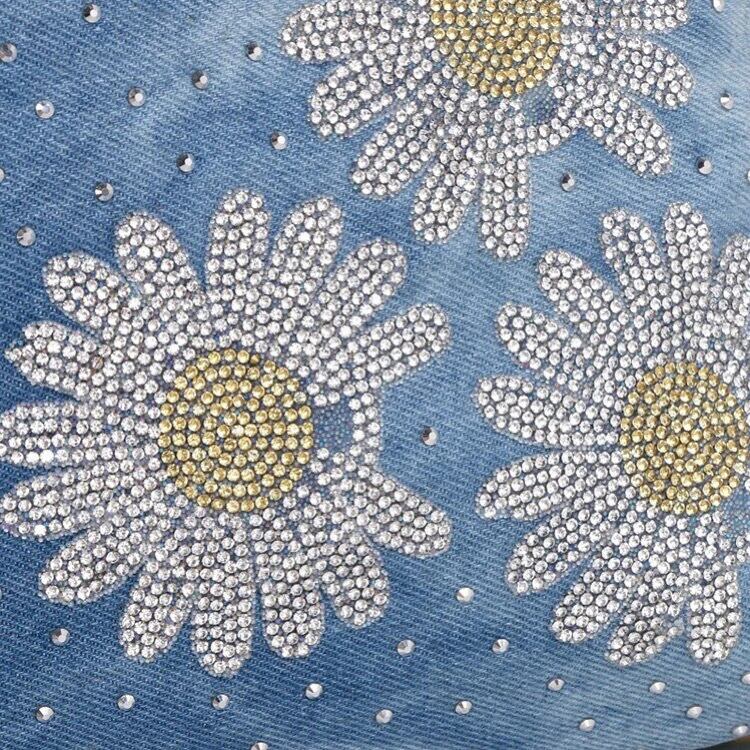 ウォッシュドデニムとラインストーンと組み合わせ。