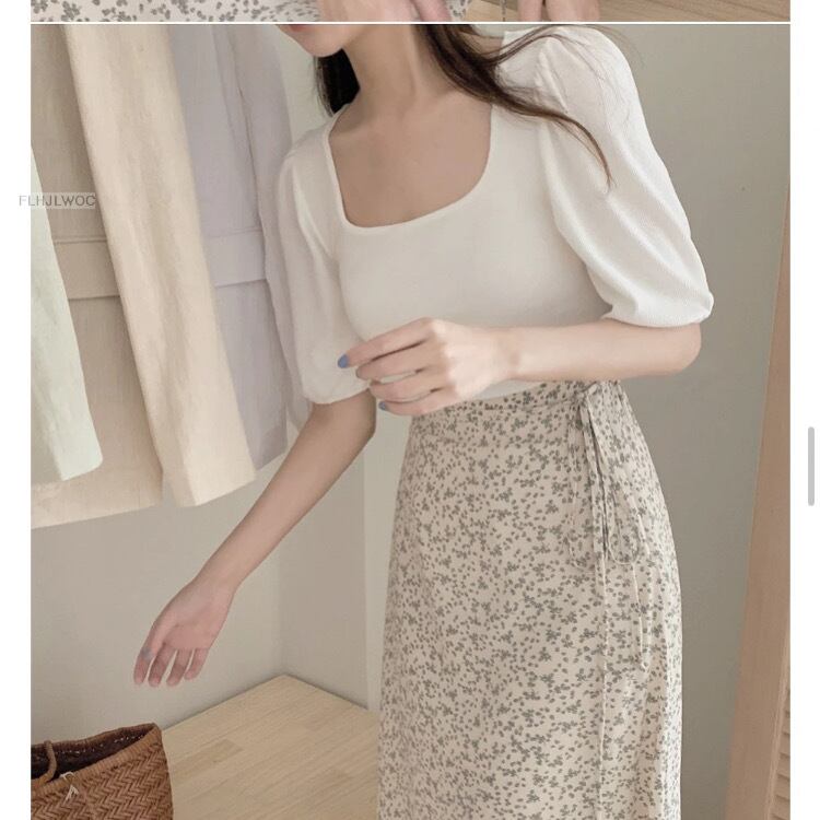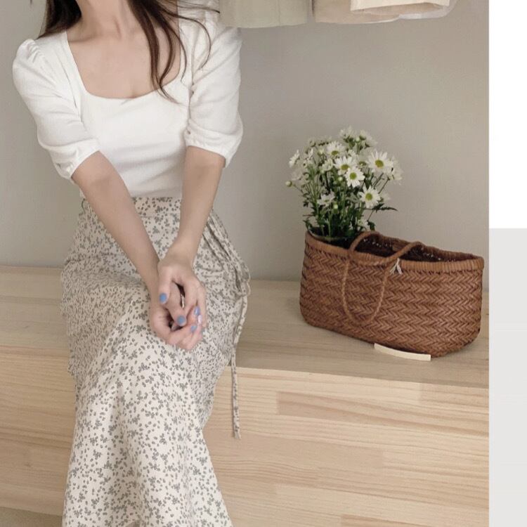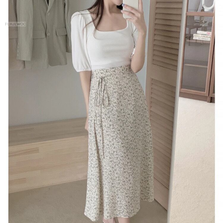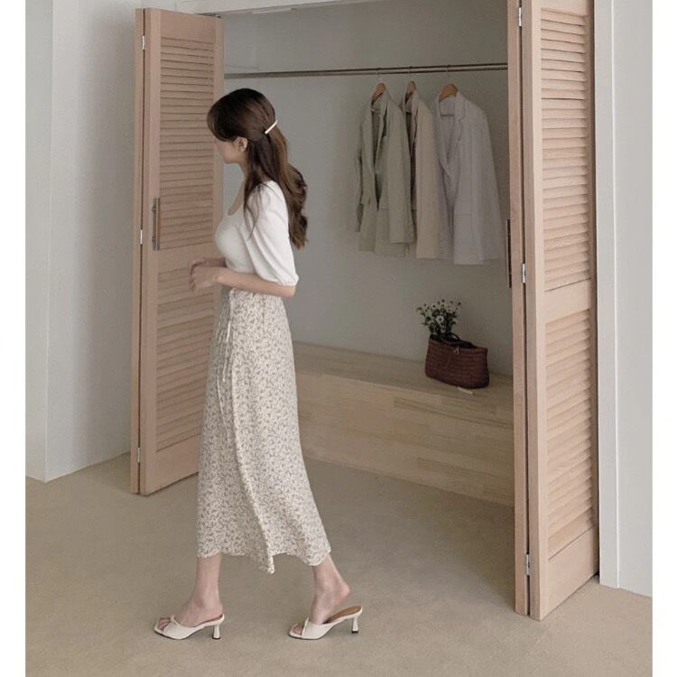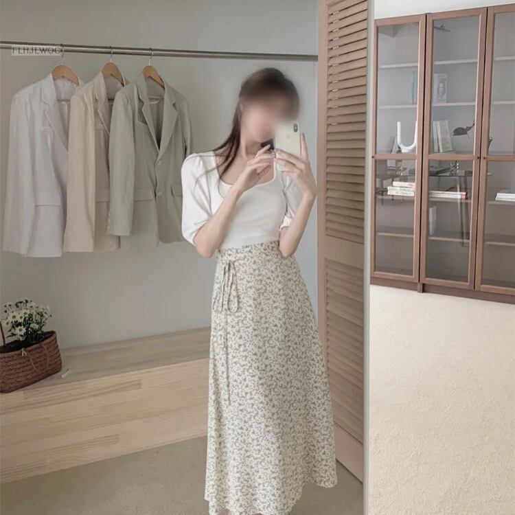 ホワイトTシャツ&フローラルスカートセットアップ3447