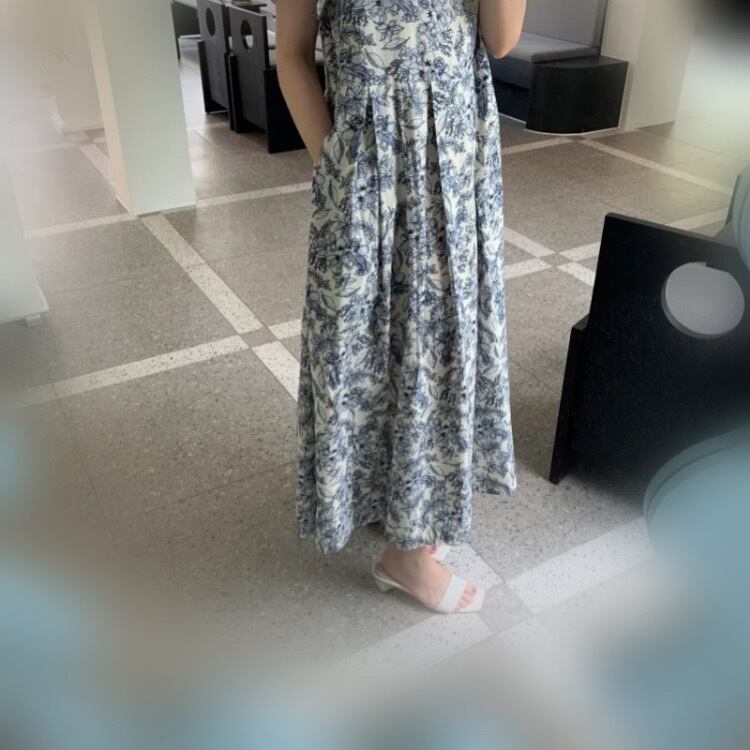 このワンピースは、綺麗な色調のトワルドジュイ風のレトロなプリントが施されています。背中には美しいバックジッパーがあしらわれ、後ろ姿も美しく演出。また、ウエストの細かなタックデザインが女性らしさを引き立て、スタイルアップ効果も期待できます。