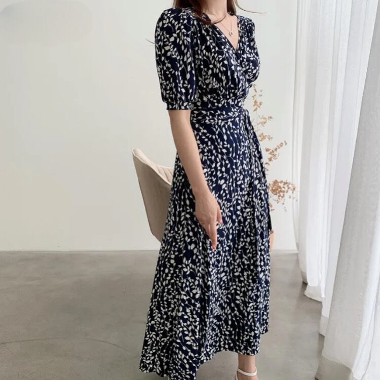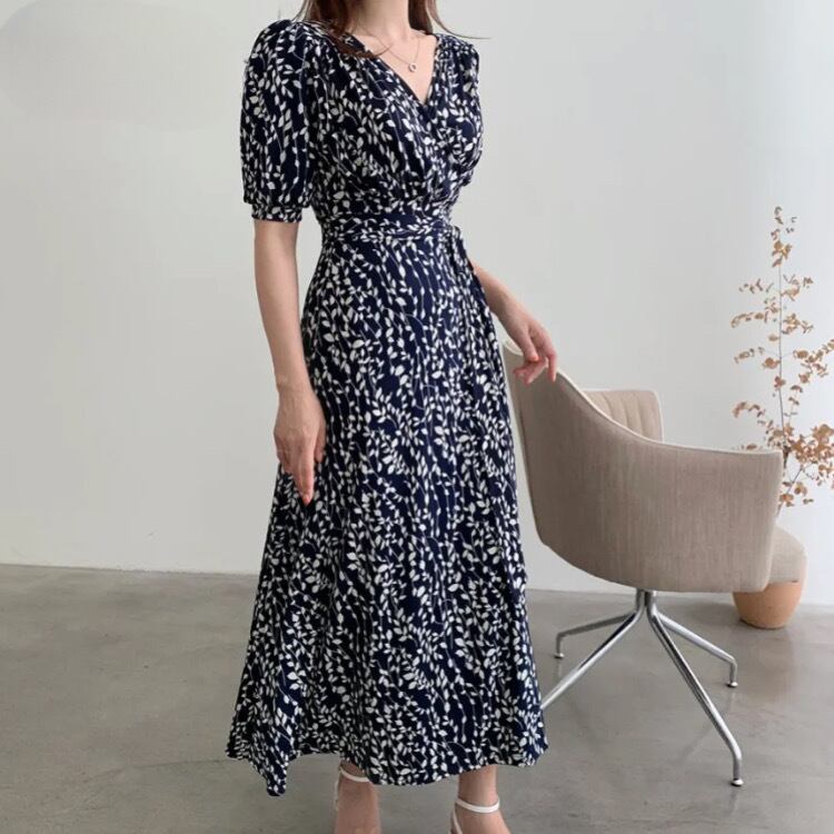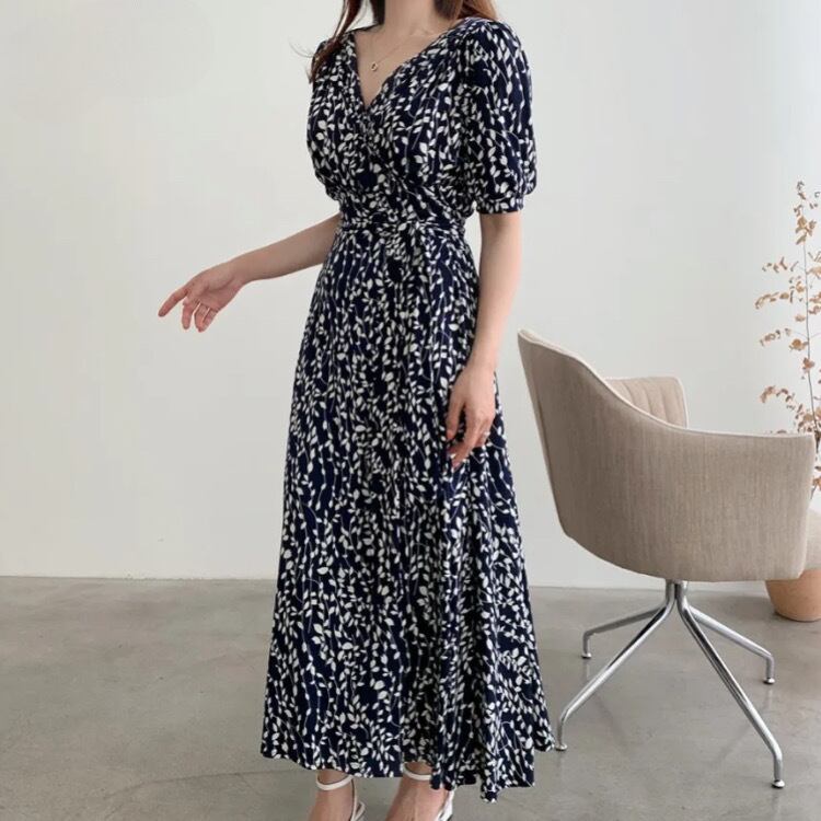 大人の女性にぴったりのリーフプリントラップ風ドレスが登場しました。 細いウエストラインとスカートの張り出しでメリハリが生まれ、女性らしさを引き出してくれます。