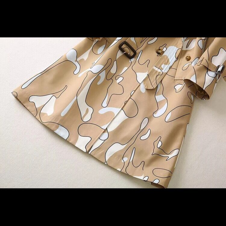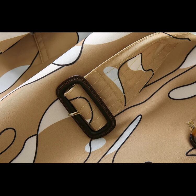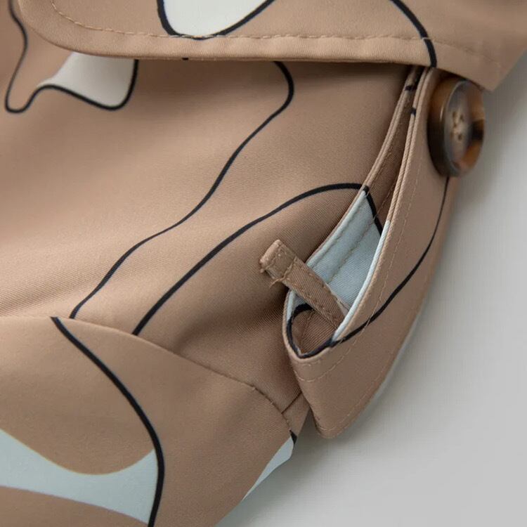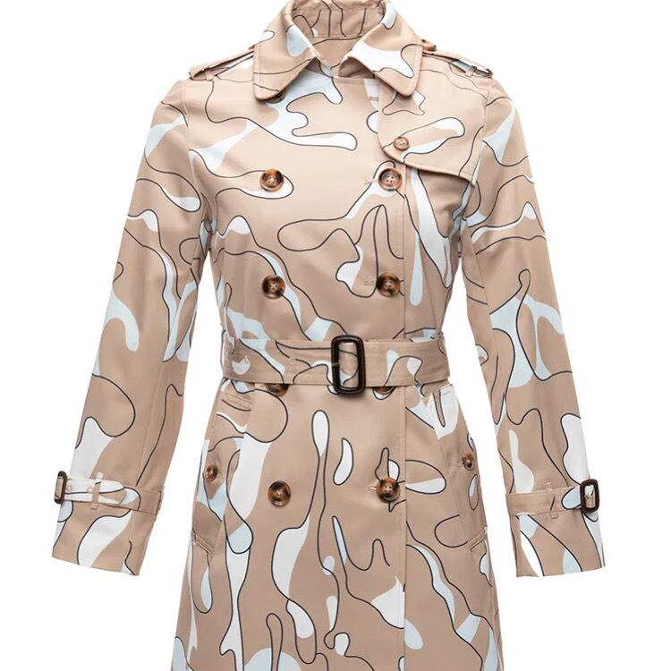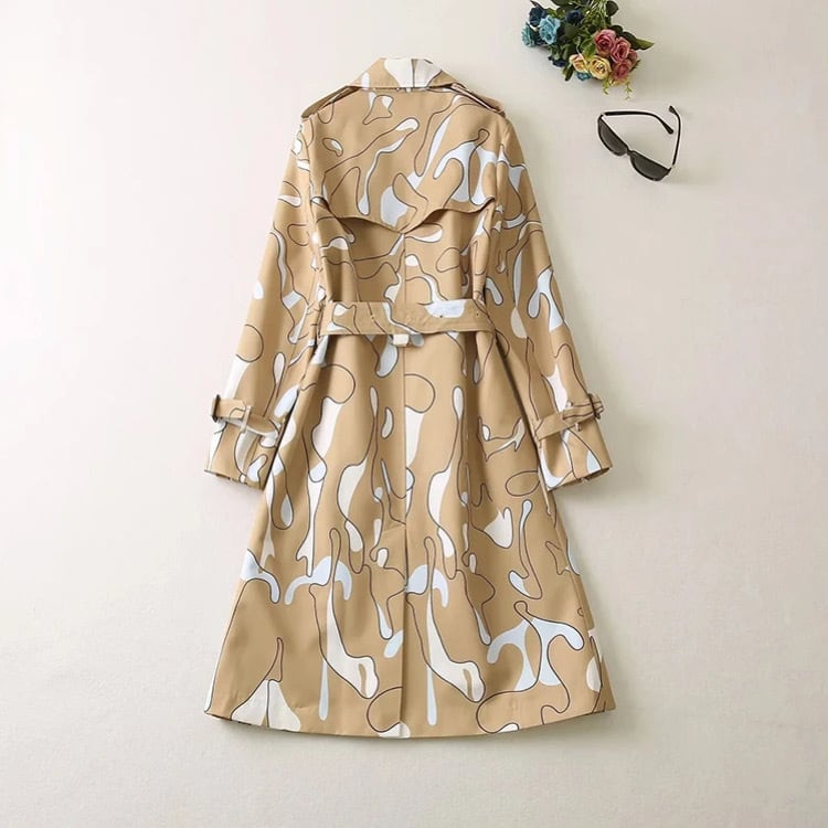 オーソドックスなトレンチコートに、遊び心のあるプリントを施した、大人向けの1枚。