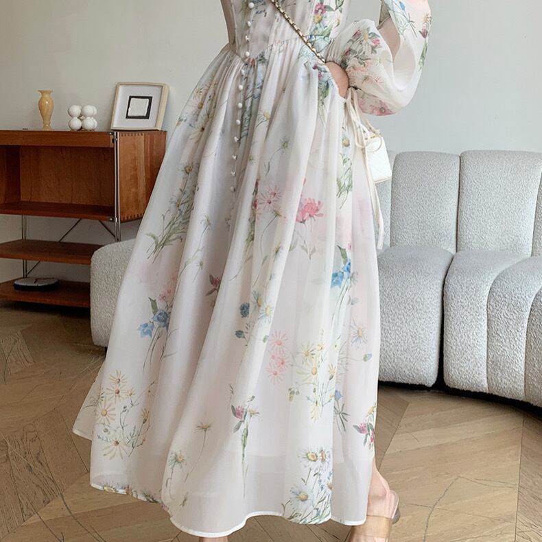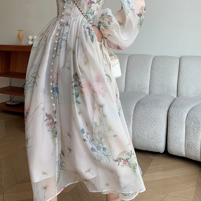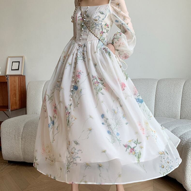 ヴィンテージフラワープレスプリントドレス3383