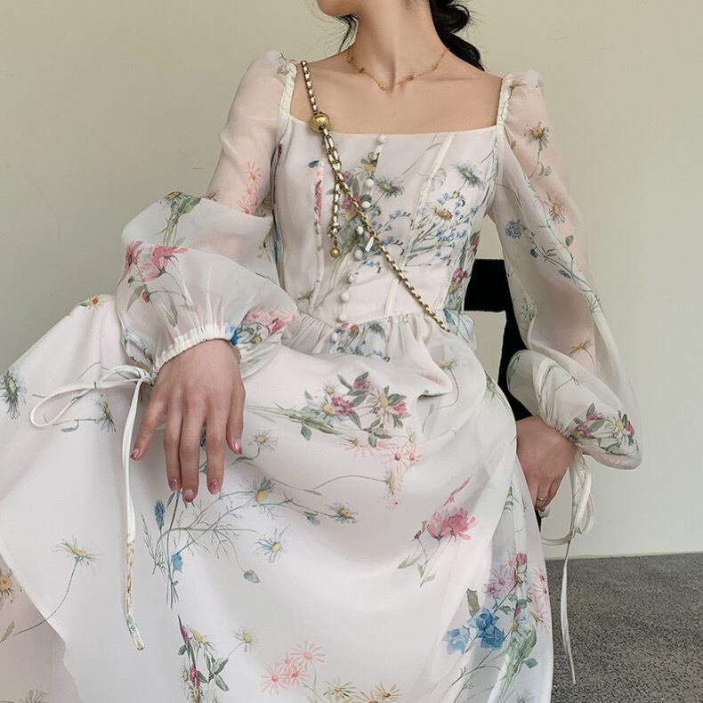 バルーンスリーブと繊細なフラワープリント。