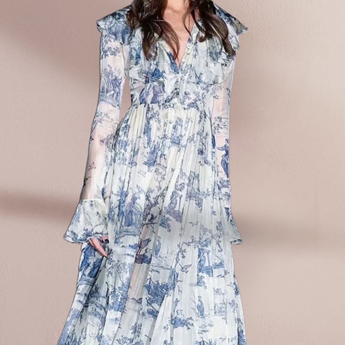 マリーアントワネットが愛したトワルドジュイ風プリントドレス。