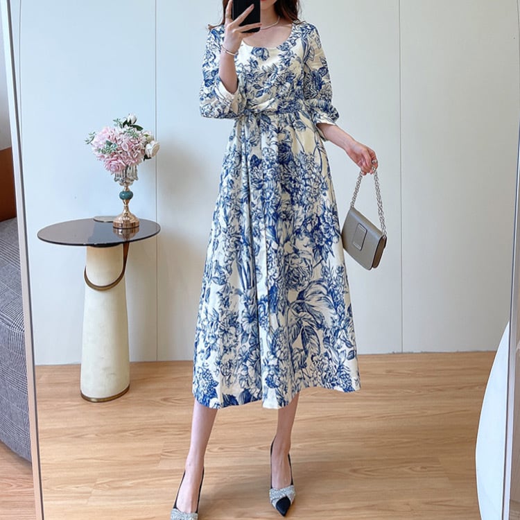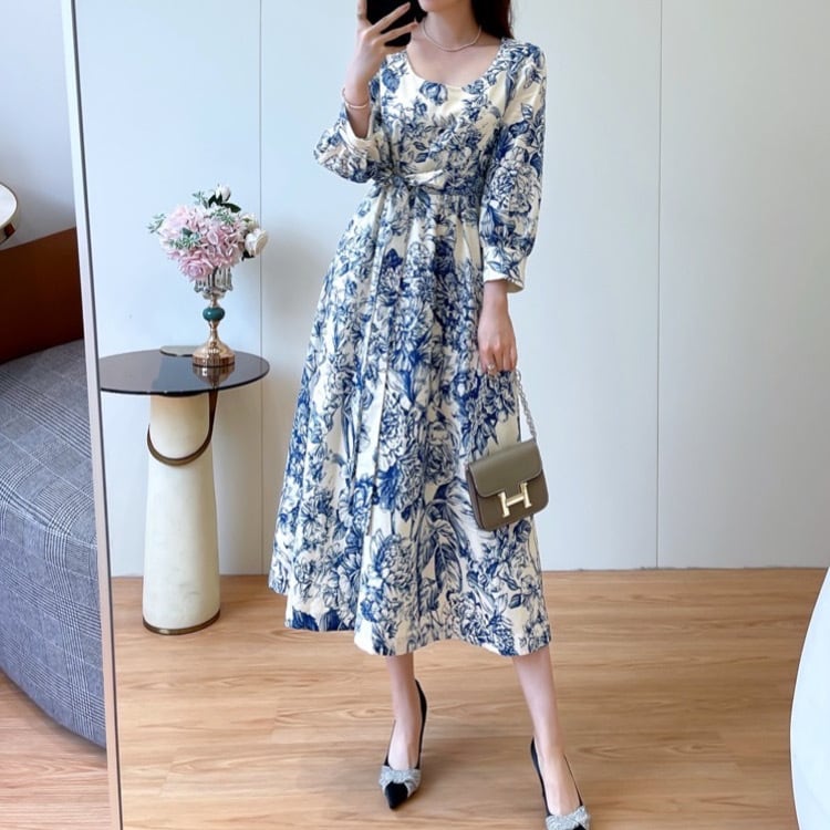 【Le choix de Wakako】トワルドセラミクスプリントドレス331720