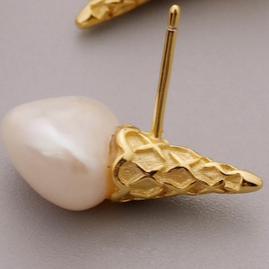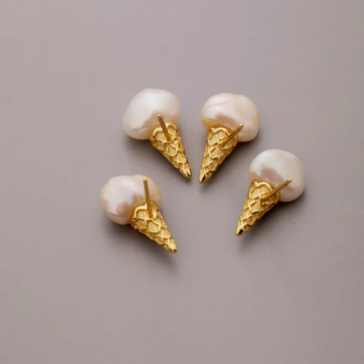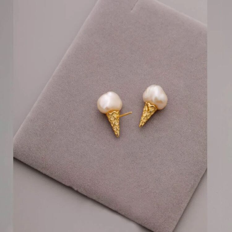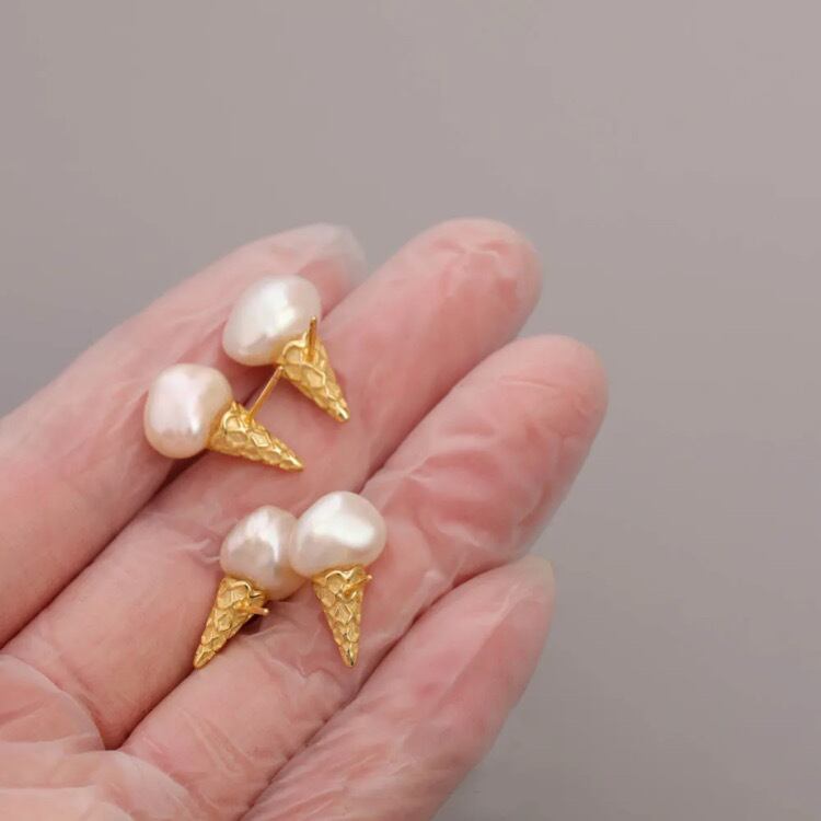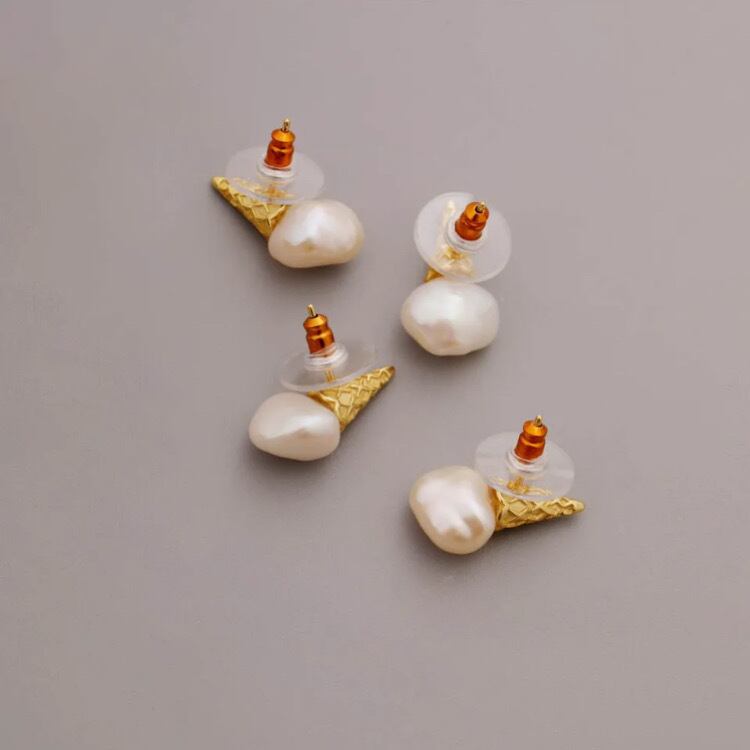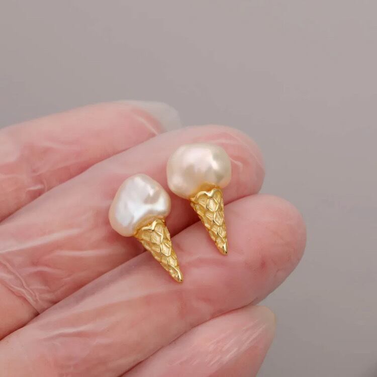 天然バロックパールを使用しており、ピアスの形状も可愛いソフトクリーム型に仕上げました。