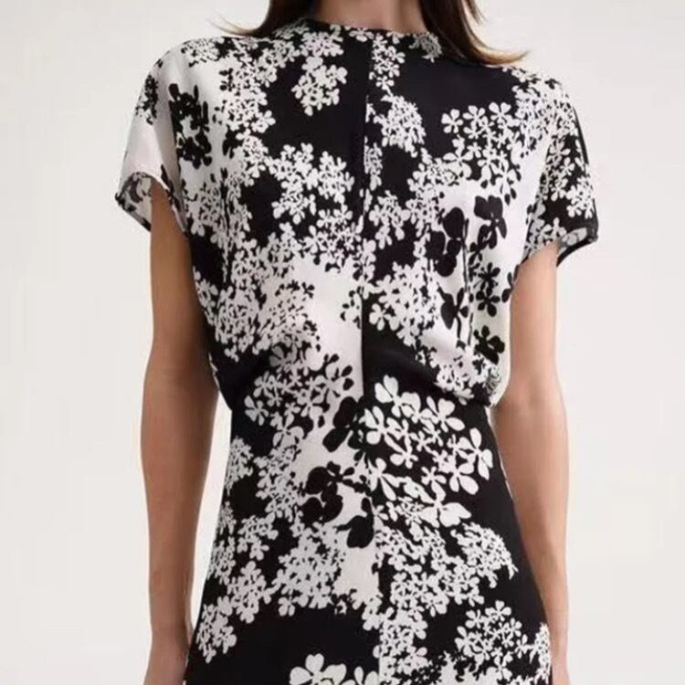 ヴィンテージモノトーンフローラルワンピース34184