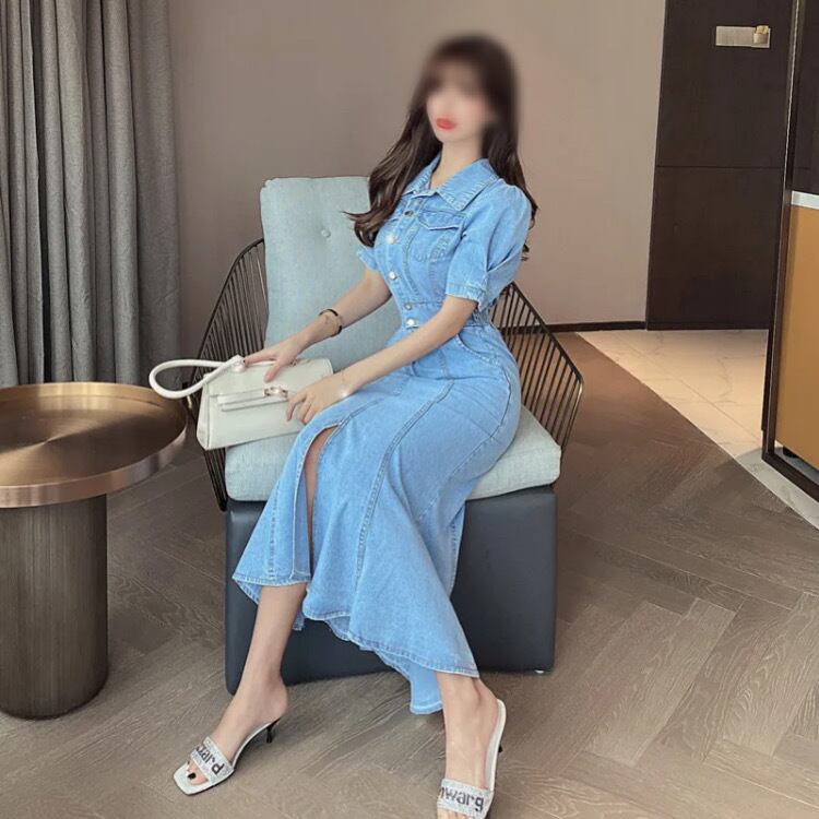 大きめパフスリーブ、背中のVネックも甘さを出しているワンピースです。