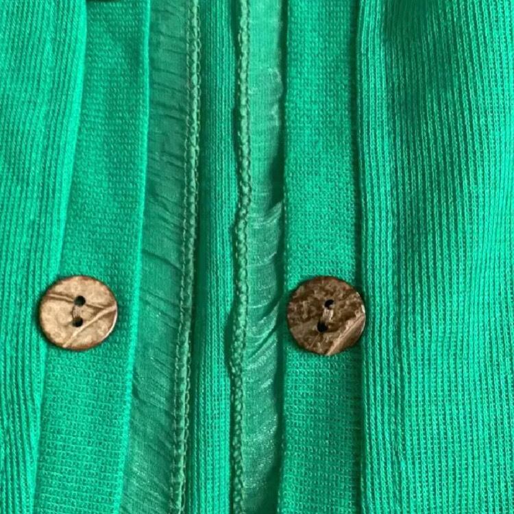 両側に並ぶボタン。 ボタンホールはなく羽織るタイプ。 薄いビスコースの涼しい素材と、トリミングがレーシーでさらに軽さが感じられ、 綺麗な色も魅力。 同系色とレイヤーすることで顔映りを明るく、 いつものワンピースに新しい存在価値を。 【サイズ】 XL 肩幅36cm/ バスト92cm/ 袖丈50cm/ 着丈53cm 2XL 肩幅38cm/ バスト98cm/ 袖丈51cm/ 着丈53cm 3XL 肩幅40cm/ バスト104cm/ 袖丈52cm/ 着丈54cm 4XL 肩幅42cm/ バスト110cm/ 袖丈53cm/ 着丈55cm 5XL 肩幅44cm/ バスト116cm/ 袖丈54cm/ 着丈56cm ✱数cmの誤差はご容赦ください。 【色】 ローズレッド スカイブルー グリーン ブラック ピンク レッド ウォーターメロン ロイヤルブルー 【素材】 ビスコース 【ご案内必ずお読みください】 ✱ご購入⇒お届けに関して ✱これからずっと1000円引きになるクーポンゲットについて ↓↓↓ ┈┈┈┈┈┈┈┈┈┈ ■お買い上げ合計¥9,000以上で送料無料 https://bon.cieletterre.shop/blog/2021/11/04/042316 ■商品が届いたら、 レビューで何かほめてくれると次回のお買い物に使える1000円プラスαクーポンGET!(1100円~???円) https://bon.cieletterre.shop/blog/2022/06/18/084444 ■まずは、クーポンをお使いになると10%OFFになります。是非ご活用ください。↓↓↓ https://bon.cieletterre.shop/blog/2022/07/02/231354 ◼️Newアイテム、売れ筋商品はこちらから https://bon.cieletterre.shop/categories/3926267 ◼️トワルドジュイやウイリアム・モリス等の生地を使用したアイテム https://bon.cieletterre.shop/categories/4195159 ︎✿お買い物をしたら何かおまけがあるかも。 https://bon.cieletterre.shop/blog/2022/06/18/143629 ◼️シェリテル神楽坂のショップコンセプト https://bon.cieletterre.shop/blog/2021/11/03/021631 ◼️ご購入前に必ずお読みください https://bon.cieletterre.shop/about 【お届けについて】 こちらの商品は海外店舗より直接発送となる為、 ご入金から「2~4週間前後」で発送致します。 ◼️注意事項 ・タイミングによっては 商品在庫切れにより 注文キャンセルとさせていただく恐れもございますので、予めご了承くださいませ。 ・こちらは輸入品です。基本的に海外製品は新品未使用品でもごくわずかな汚れや ほつれがある場合もございますが、シェリテル神楽坂では、現地提携会社において厳しめに検品をお願いし、その時点で不良品等が見つかりました場合、シェリテルの負担で交換返品を行って参ります。 そのために、お届けの日数を余分に頂く場合がございますのでご承知おきくださいませ。 ただし、中にはお客様への直送商品もございます。この場合海外販売者には、綺麗な商品のみ厳選して二重検品の上お届けするよう、強めにお願い致しております。 ・仕入れ工場を変えることがあるため、記載サイズと若干異なる場合がございます。 ・商品の色味は、お手持ちのスマートフォンの画面によって実物と若干異なる場合がございます。 ・イメージ違いやサイズ交換等、お客さまご都合による交換、返品は対応出来かねます。 【お支払方法】 ・クレジットカード決済 (VISA/Master/JCB/AMERICAN EXPRESS) ・キャリア決済 (docomo/au/SoftBank/Y!mobile/UQmobile) ・銀行振込 (三井住友銀行) ✱銀行振込ができない時期もございます。ご了承ください。 ✼••┈┈┈┈┈••✼••┈┈┈┈┈••✼ フォローお願い致します。 【シェリテル神楽坂Ciel et Terre】 Instagram https://instagram.com/cieletterre.shop Lemon8 こちらもフォローお願い致します。 www.lemon8-app.com/cieletterre?region=jp お読みくださいまして 誠にありがとうございました。 どうぞ引き続きお買い物をお楽しみ下さいませ。